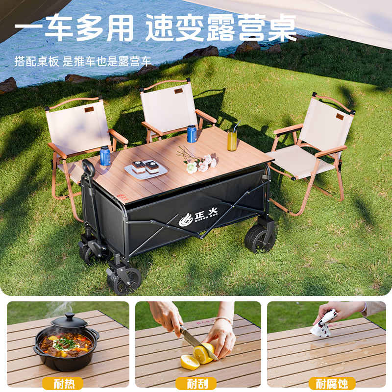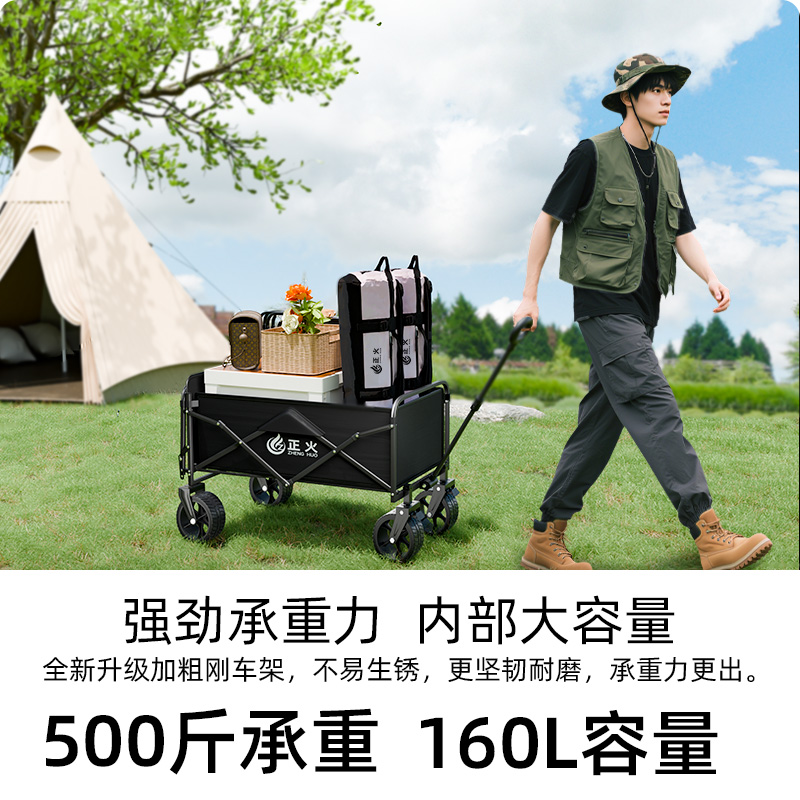 正火露营车户外手推野餐可折叠营地拖车摆摊小推车儿童可躺小拉车