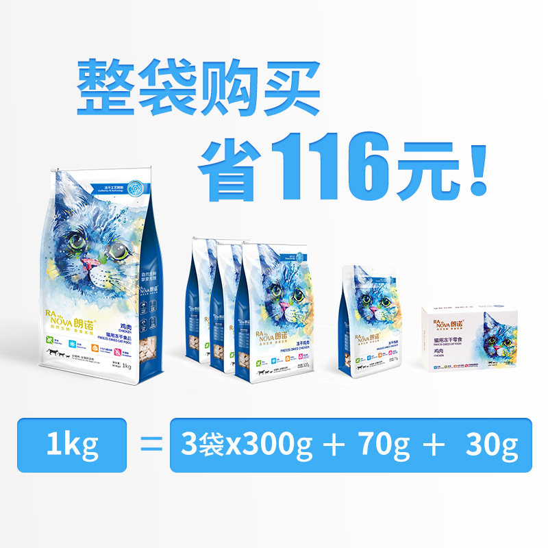 朗诺冻干鸡肉猫零食猫粮牛肉鸭肉金枪鱼三文鱼幼猫零食肉干1000g