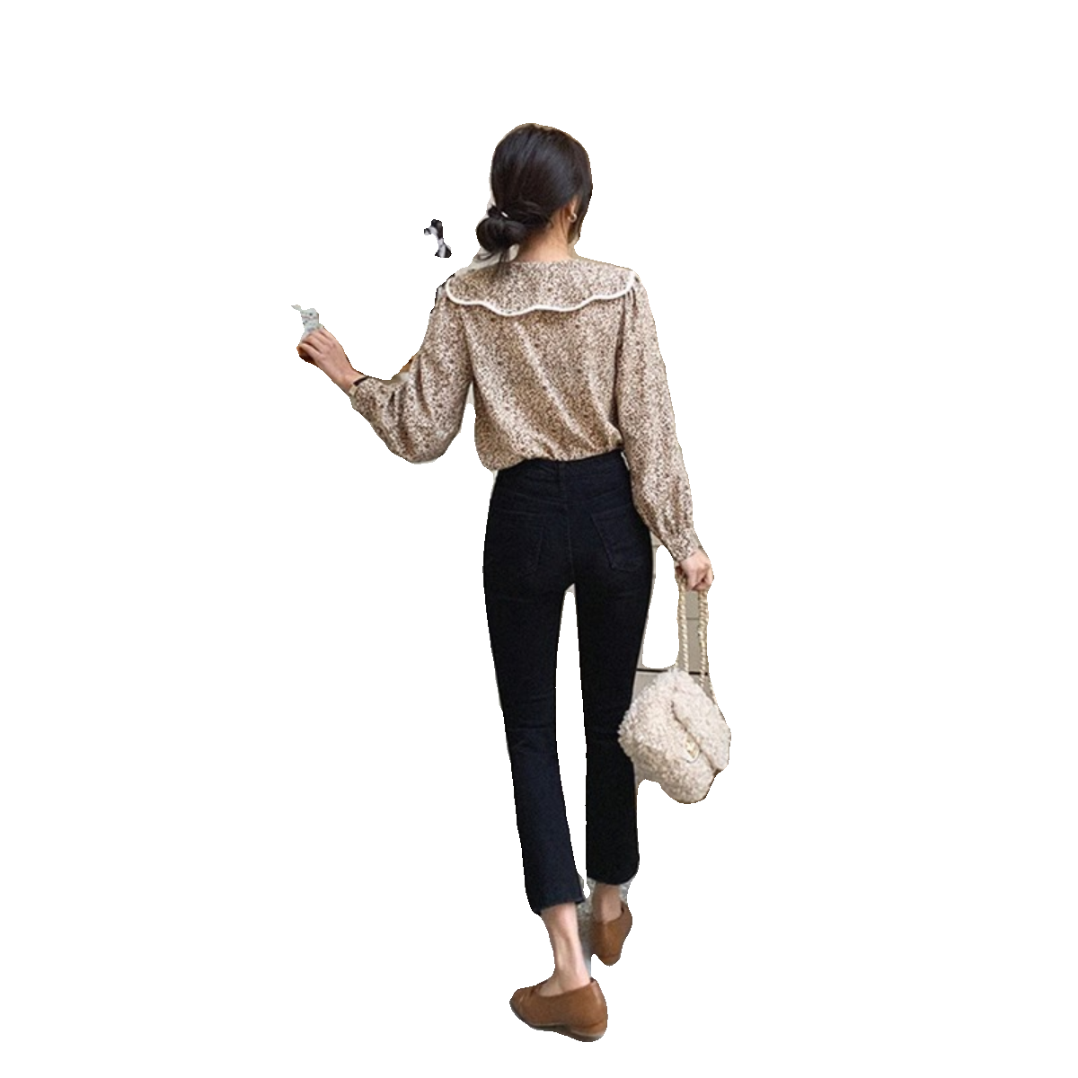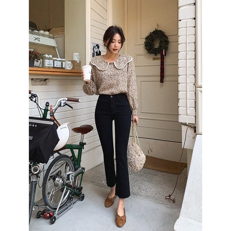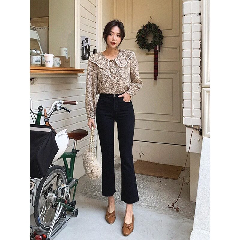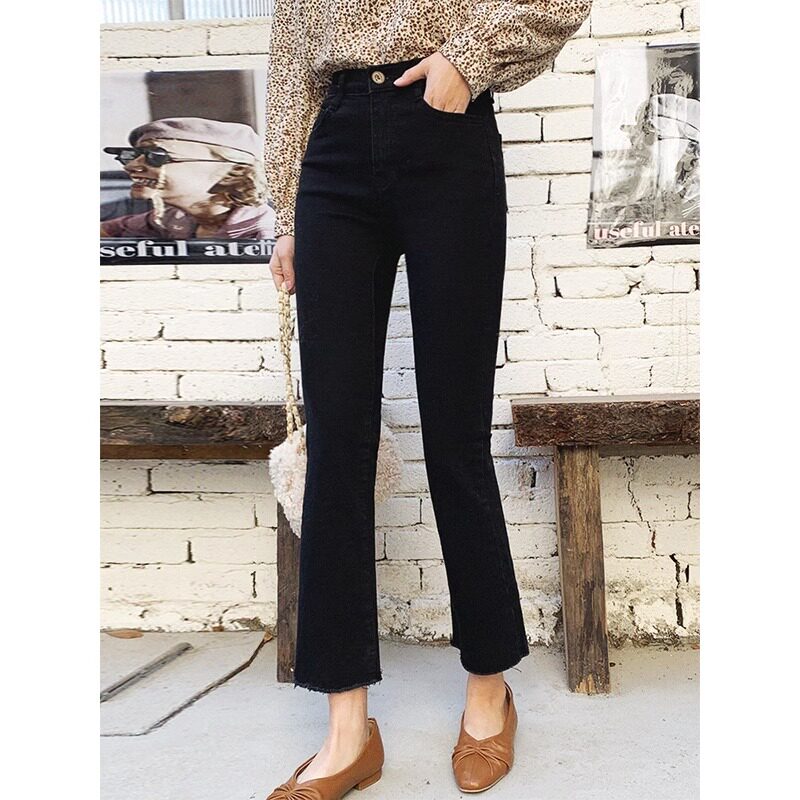 黑色微喇叭牛仔裤女九分秋冬薄绒