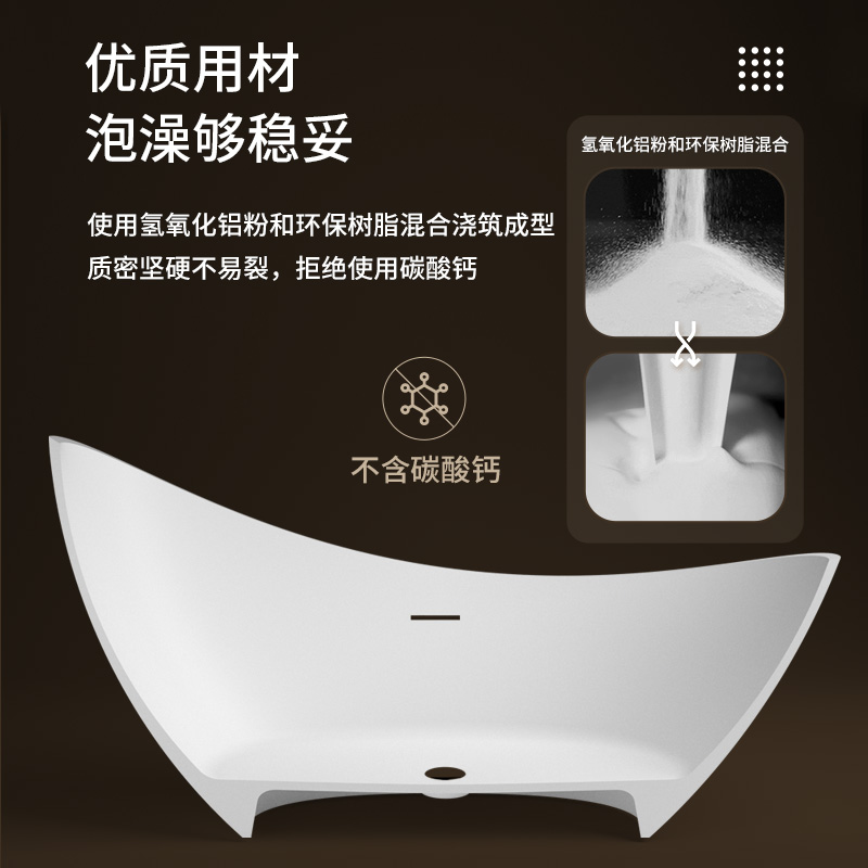 浪鲸卫浴人造石浴缸家用酒店民宿轻奢独立式空缸1.8米成人定制
