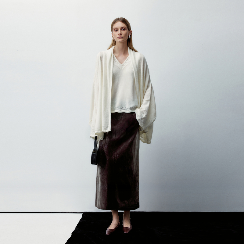 LYNEE【奶油云朵】羊毛混纺蕾丝花边慵懒针织开衫/针织背心两件套