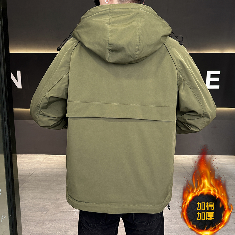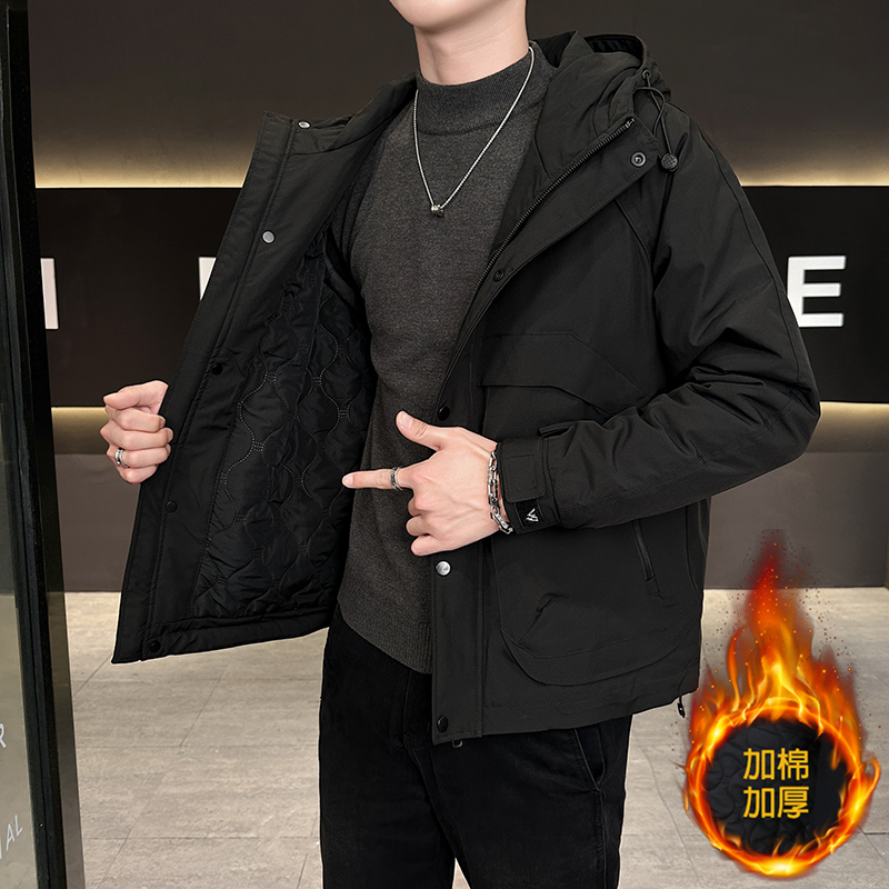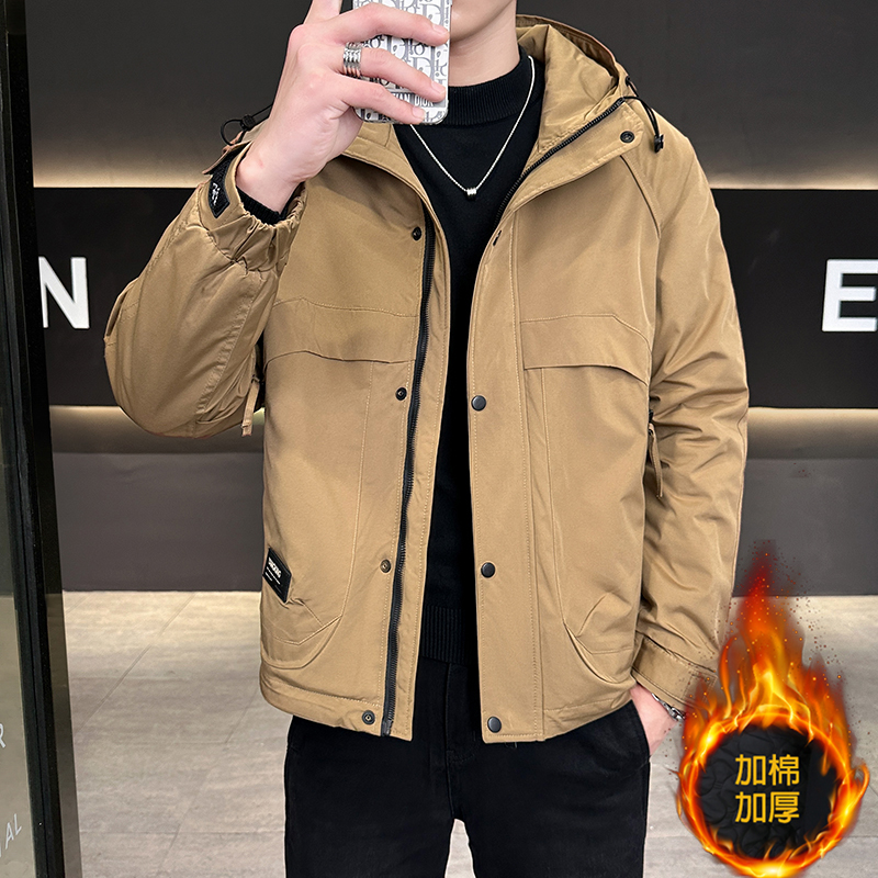 二棉外套男秋冬季新款加棉加厚保暖连帽冲锋夹克潮牌青年男装衣服