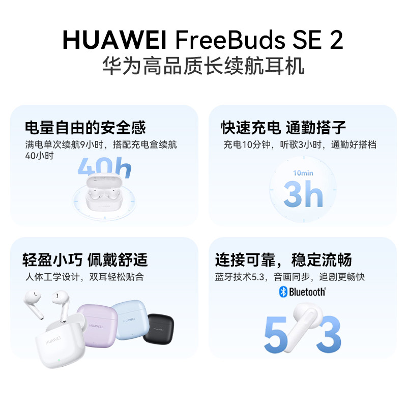 华为Freebuds SE2无线蓝牙耳机超长续航半入耳式华为官方正品耳机