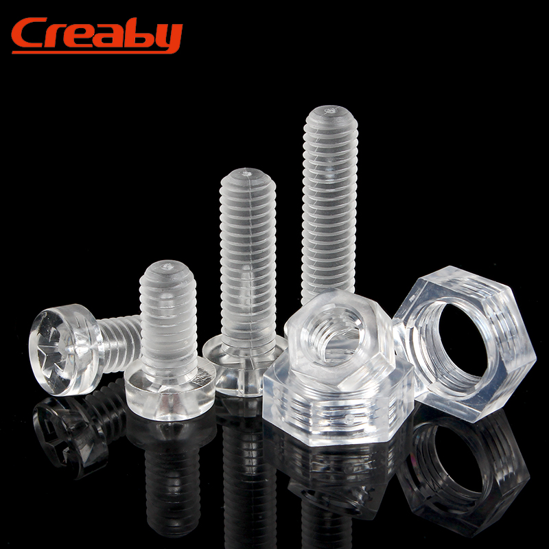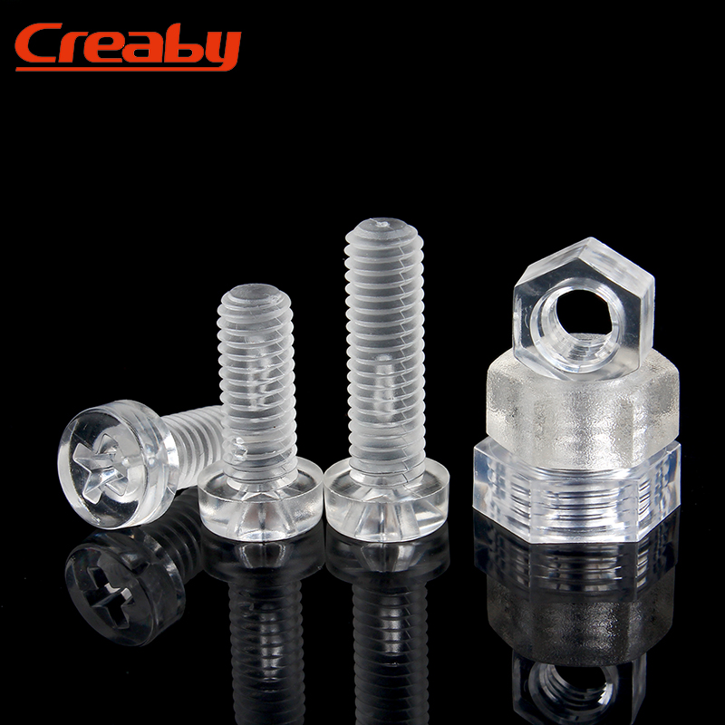 PC透明十字圆头螺钉塑料六角螺母亚克力螺丝塑胶盘头螺栓M3M4M5M6