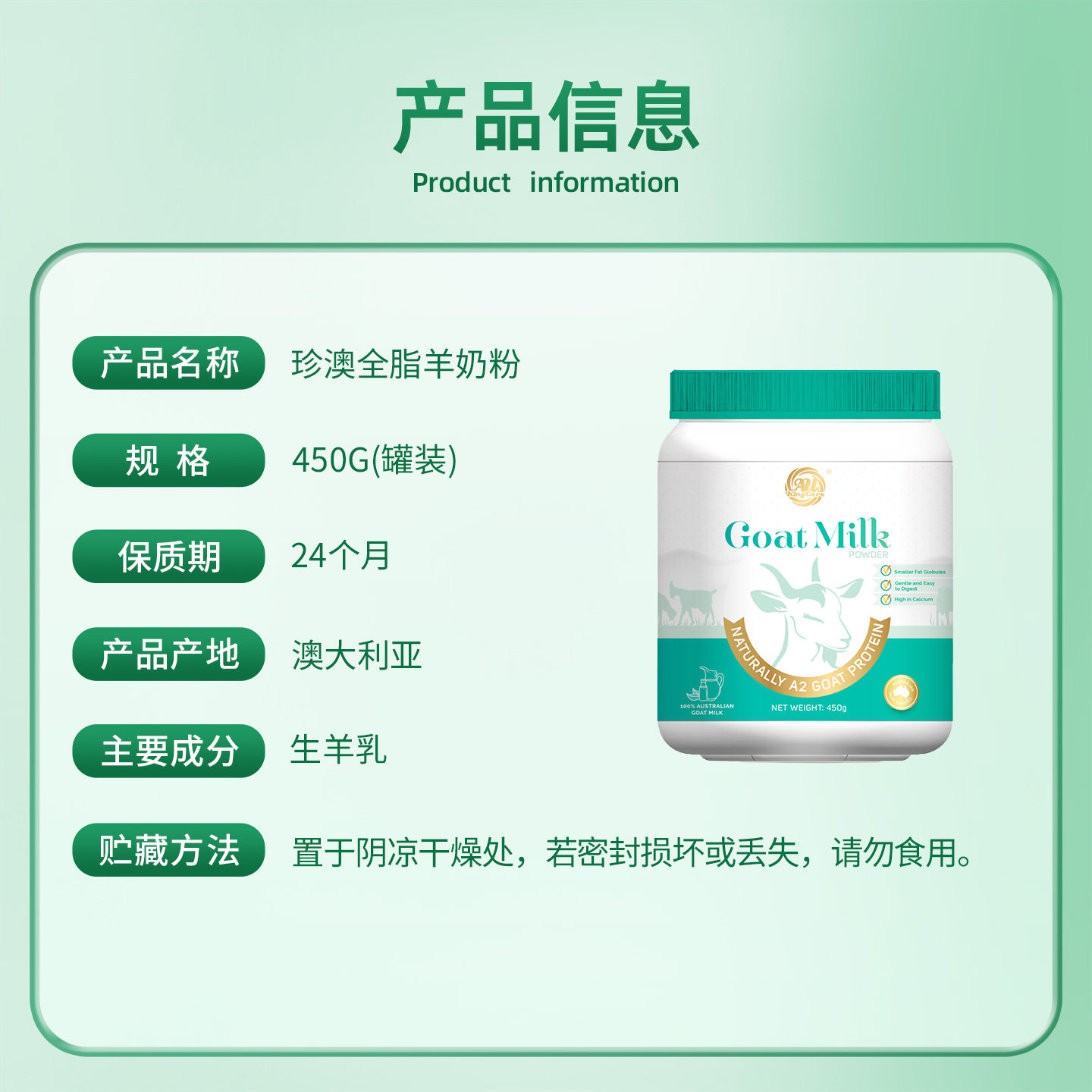 珍澳澳大利亚原罐进口高钙高蛋白全脂羊奶粉成人中老年成人450g
