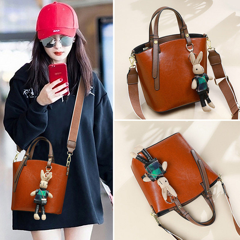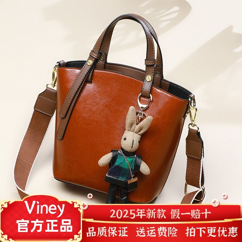 Viney牛皮包包女包大容量水桶包斜挎单肩包轻奢百搭送生日礼物