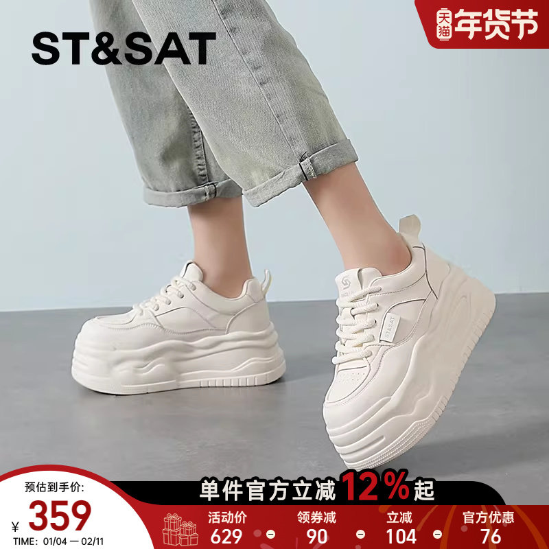 星期六松糕厚底小白鞋女款2025秋季新款休闲鞋小个子百搭增高板鞋