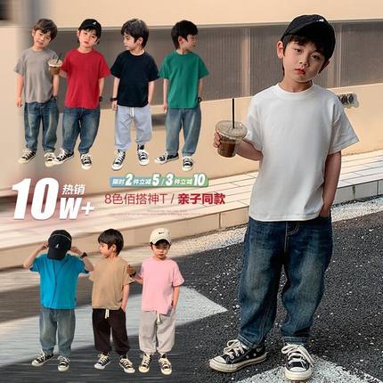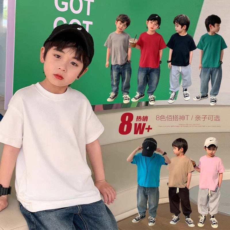 童装男童短袖纯棉T恤2025新款中大童夏季纯色上衣儿童半袖夏装