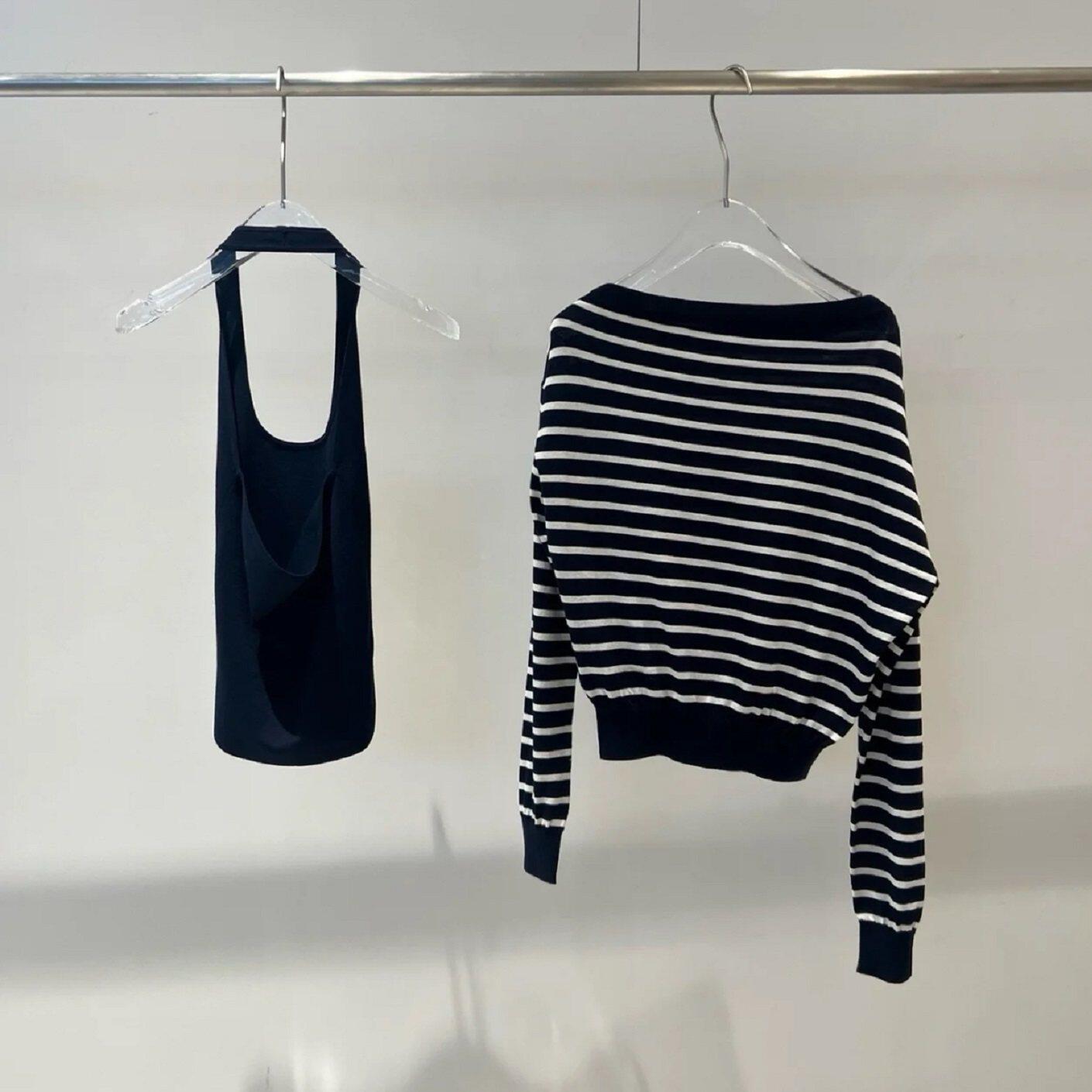 MM商场同款2026春新款时尚百搭条纹套头两件套针织衫女上衣801201