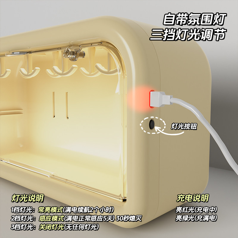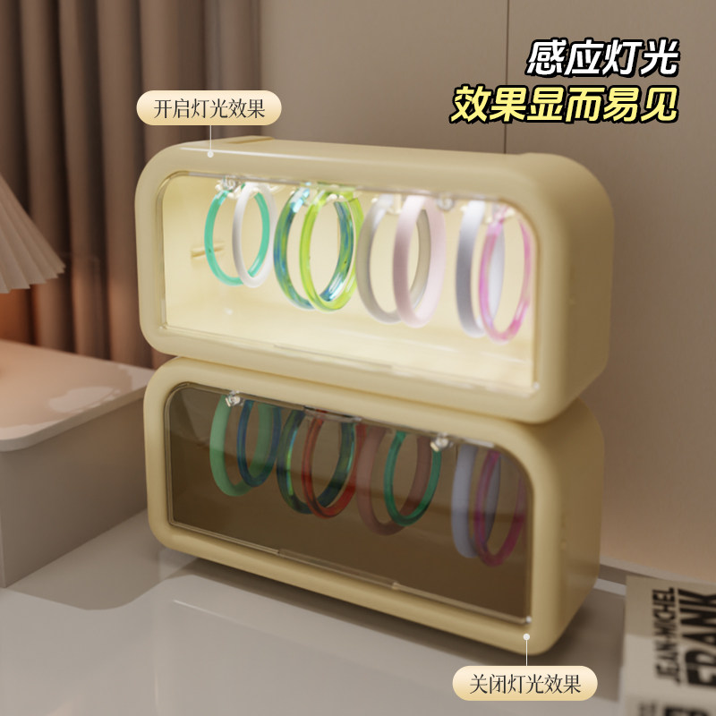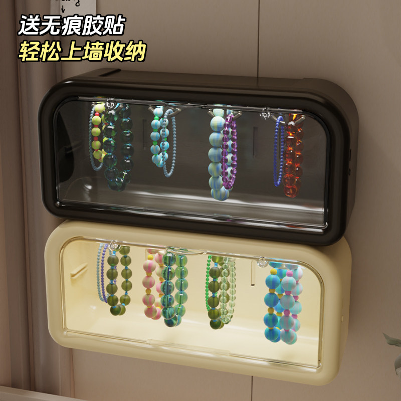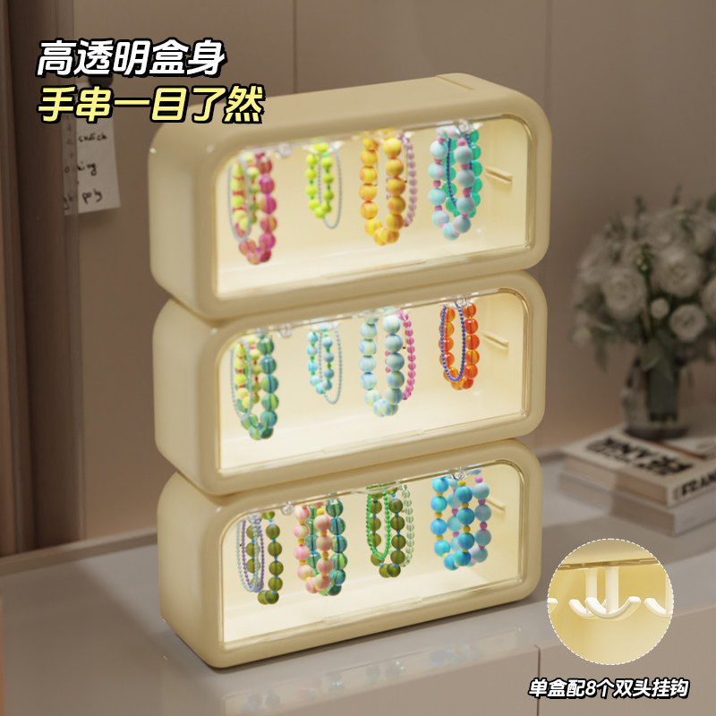 水晶手链收纳盒带灯防尘多层项链手镯首饰品柜文玩手串展示柜壁挂