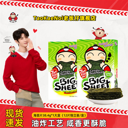 陈哲远TaoKaeNoi老板仔旗舰店泰国零食进口海苔炸脆紫菜12片38.4G