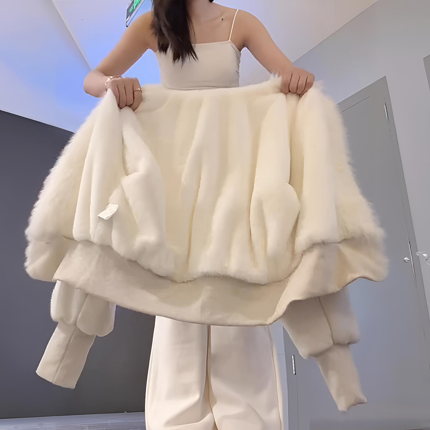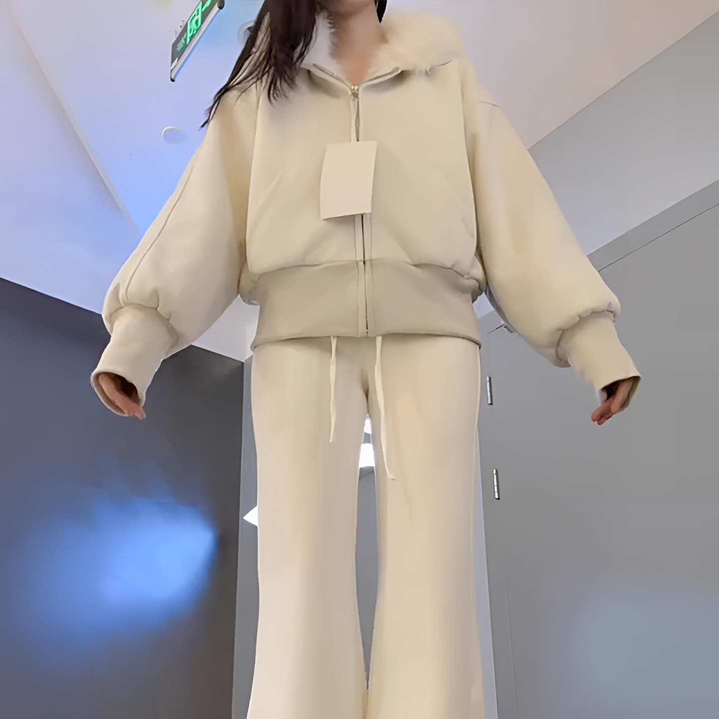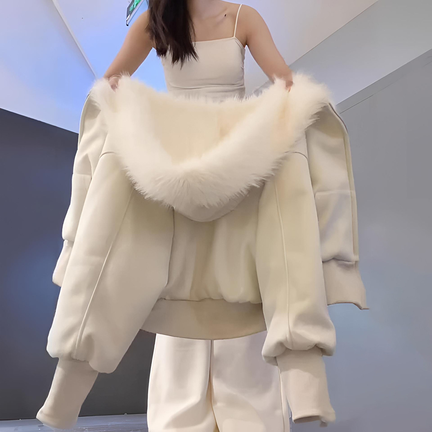 300斤大码女装加厚保暖连帽棉服女米白色宽松慵懒风简约百搭外套