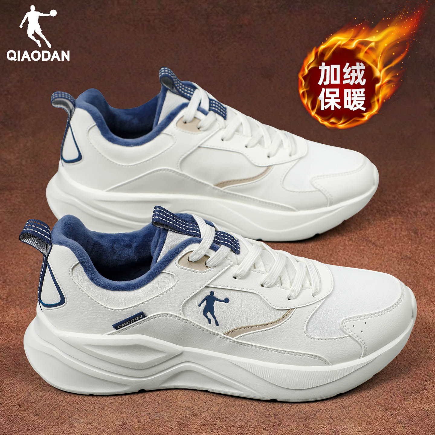 乔丹男鞋秋冬季加绒运动鞋2025新款皮面保暖鞋子软底黑色跑步鞋男