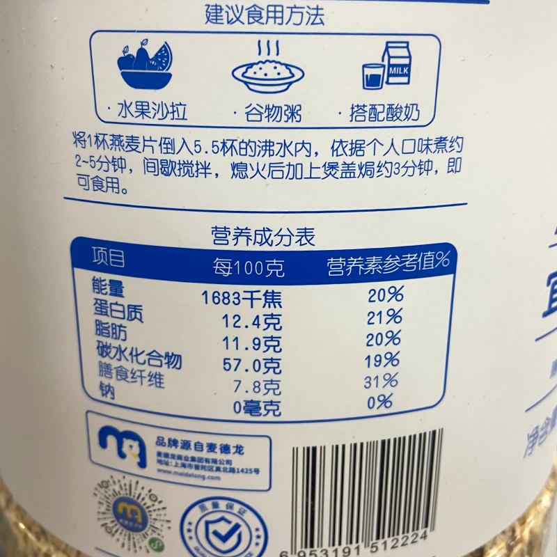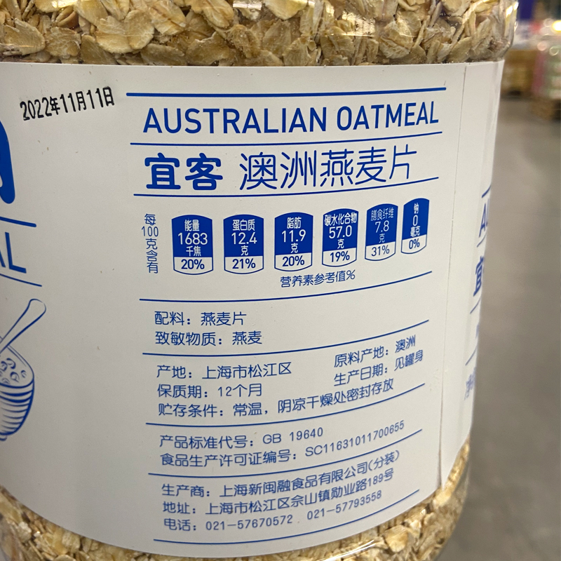 麦德龙代购澳洲原味早餐谷物膳食纤维澳洲燕麦片2kG大罐装非即食