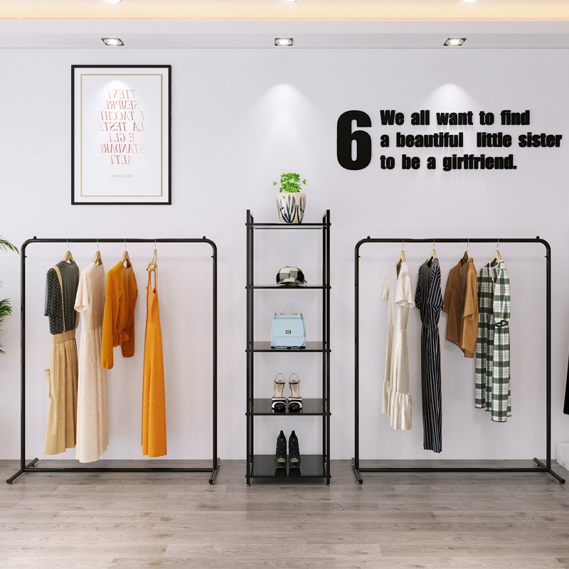 落地式女挂衣服装店衣架展示架 复古铁艺服装架子货架侧挂架