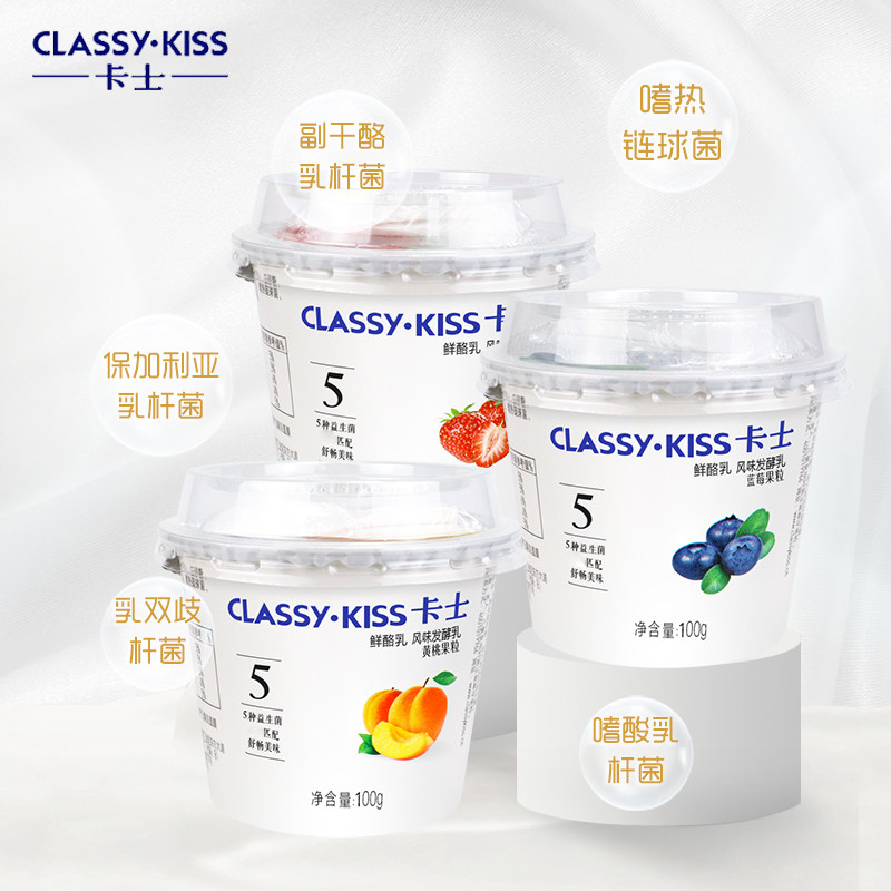 卡士果粒鲜酪乳草莓蓝莓黄桃风味发酵乳100g低温早餐酸奶