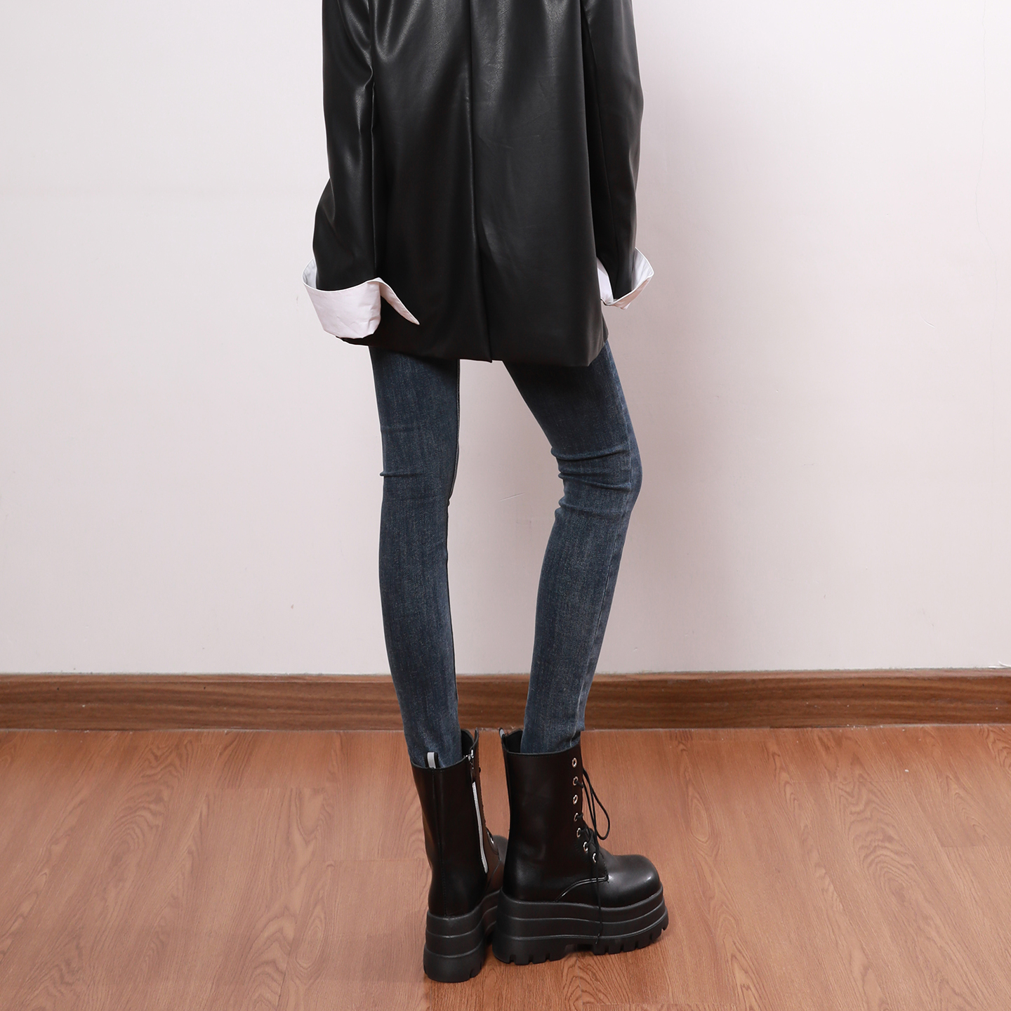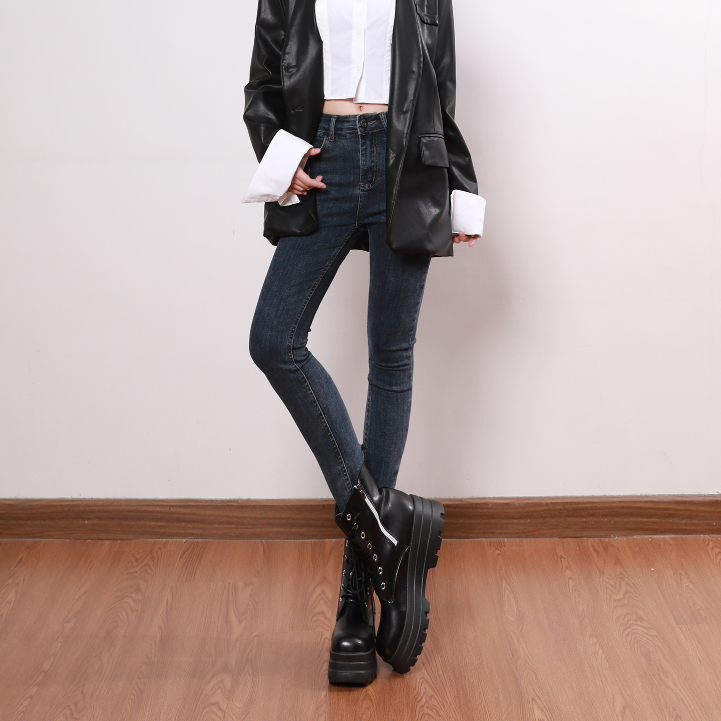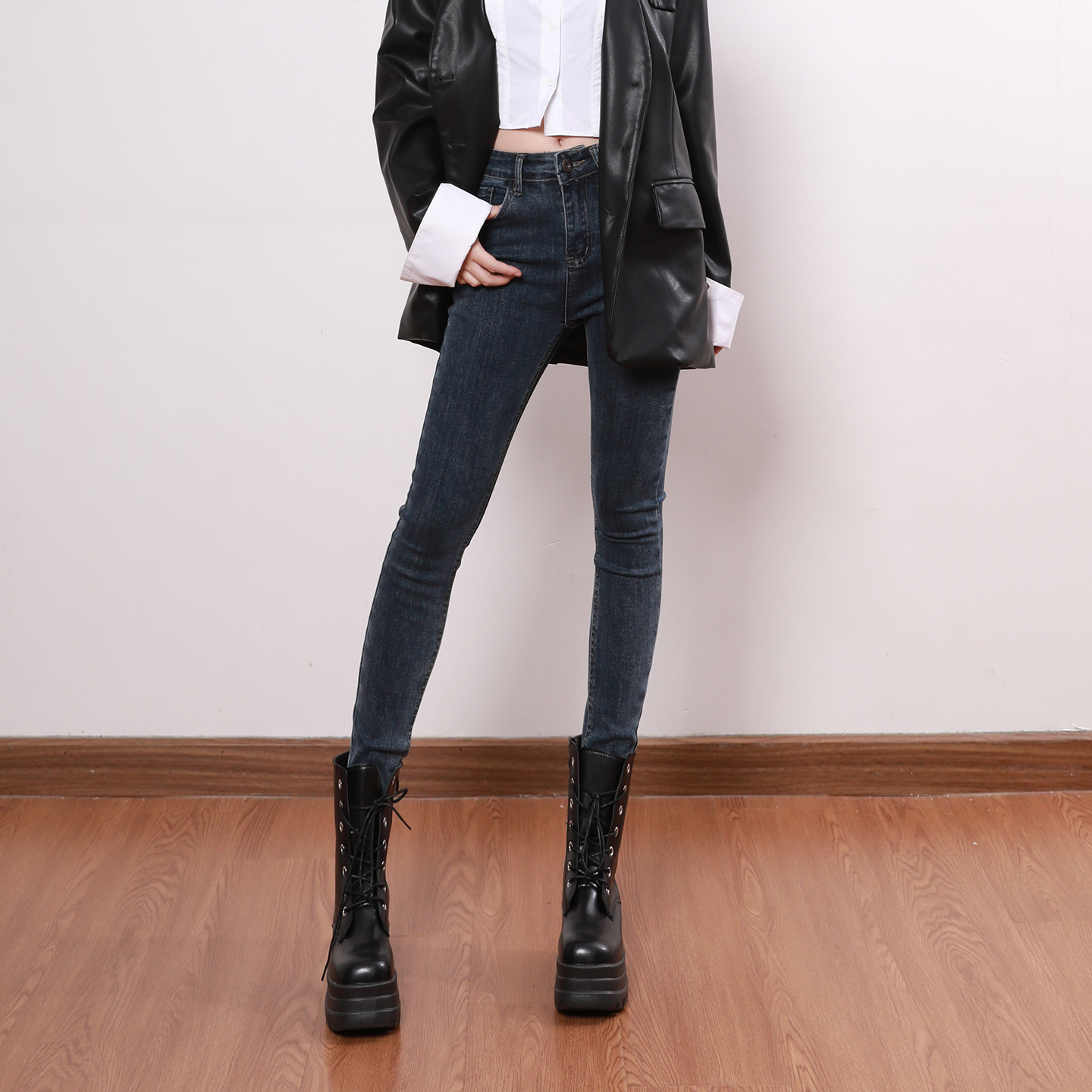 艾格蓝灰色高腰紧身牛仔小脚裤女九分铅笔裤小个子显瘦修身靴裤潮