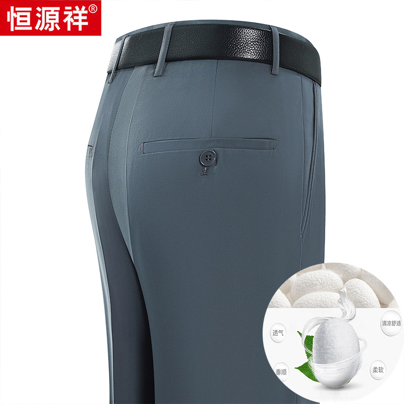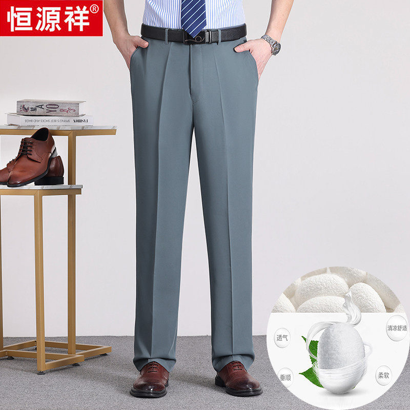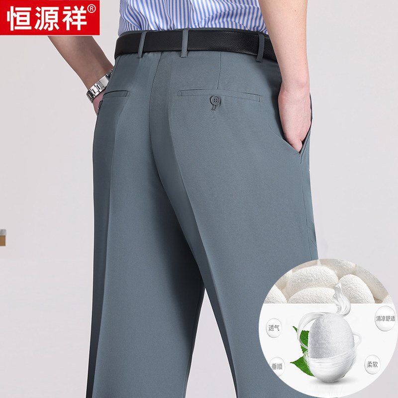 恒源祥桑蚕丝西裤男中年夏季薄款宽松免烫高腰抗皱西装裤男长裤子