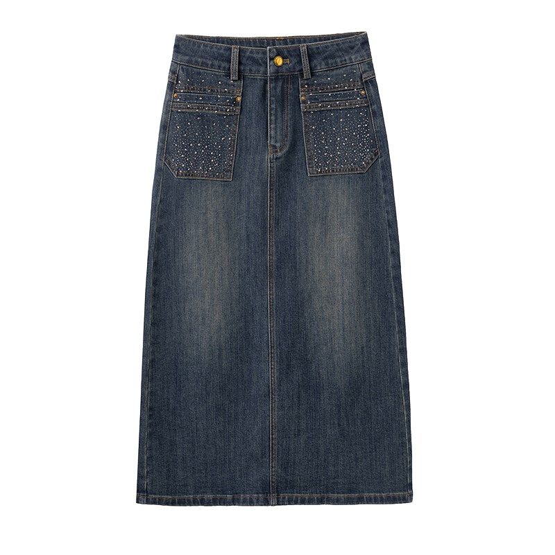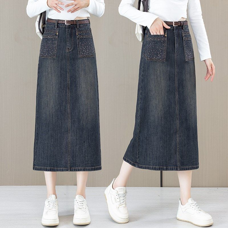 速发水泥灰长仔半身裙2024春新款高腰后开叉中裙款一步时尚牛子
