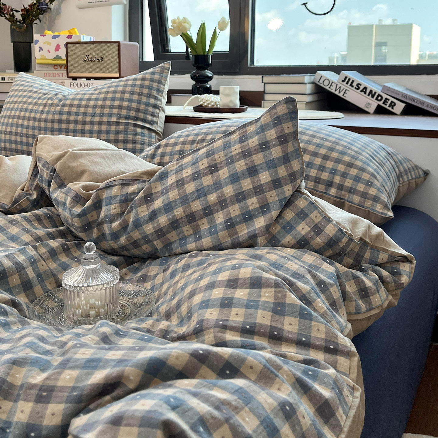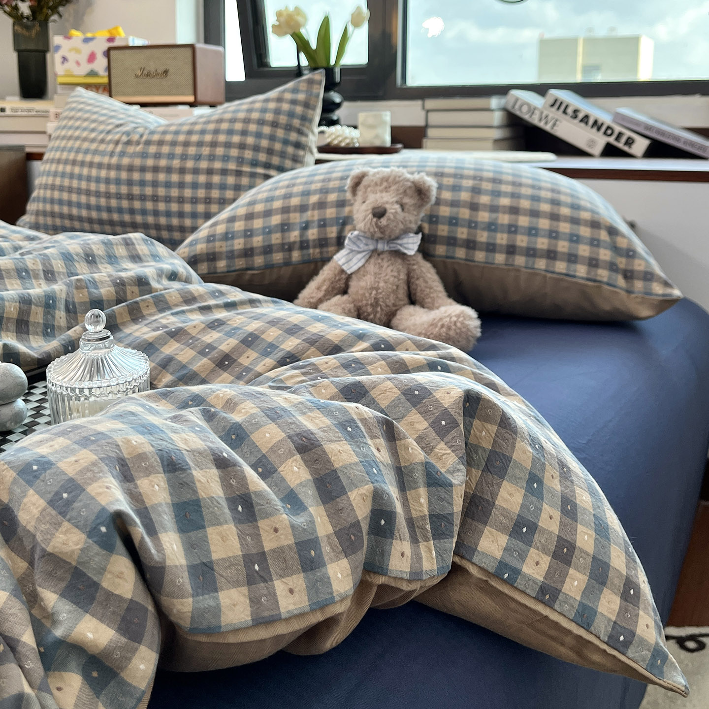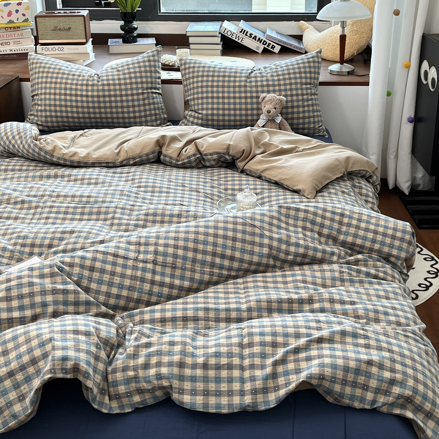日式格纹小提花全棉水洗棉四件套