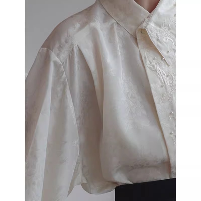 新中式缎面白衬衫女长袖