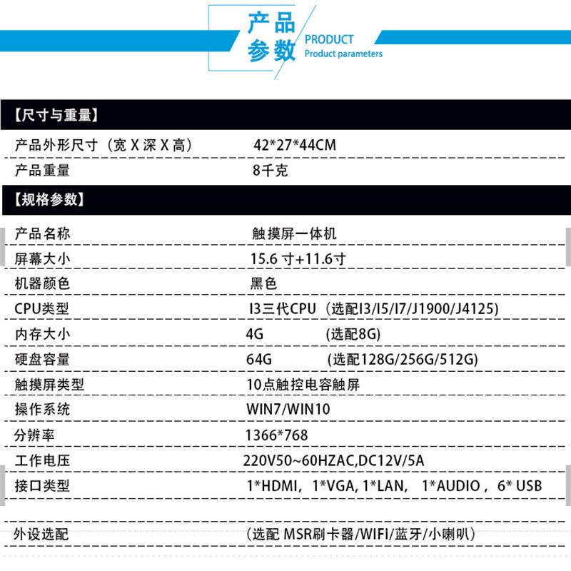 15.6寸超市双屏收银一体机便利店餐饮母婴收银机