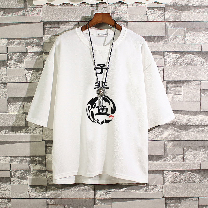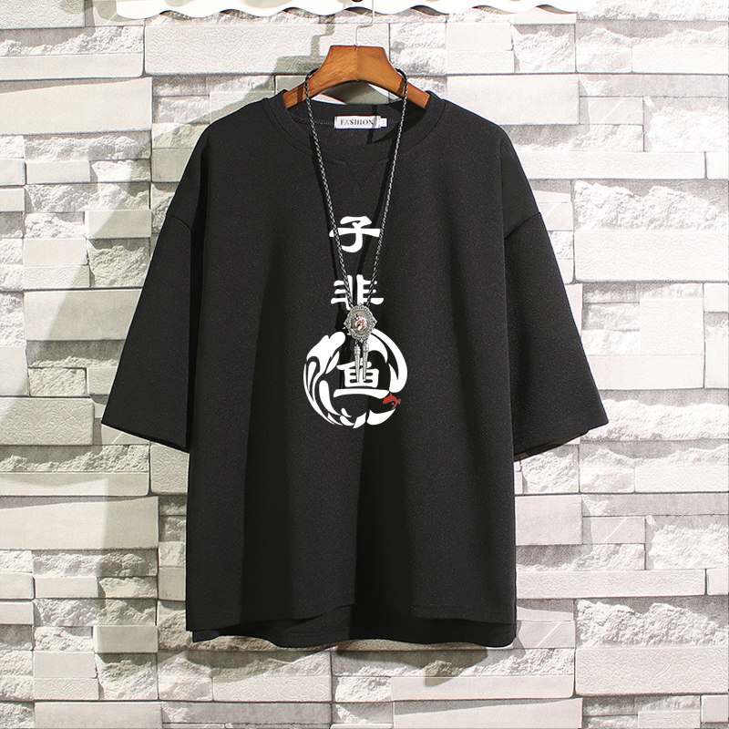男士宽松五分短袖t恤潮流夏季七分袖男生衣服加肥加大体恤夏男装