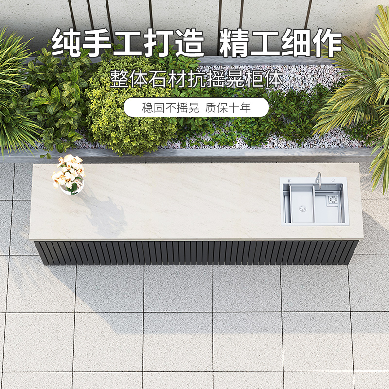 庭院大理石操作台露天水槽户外洗手池别墅院子室外水池台盆一体柜