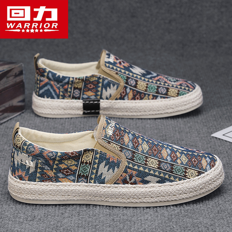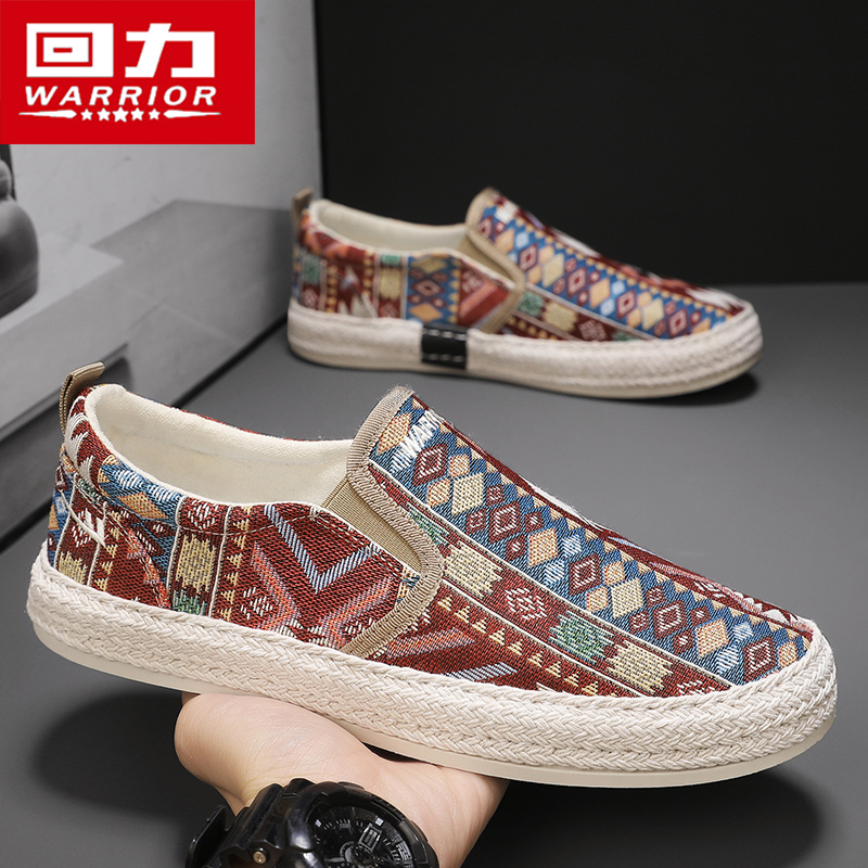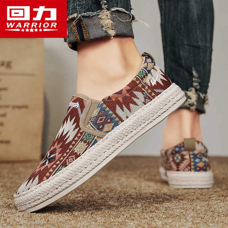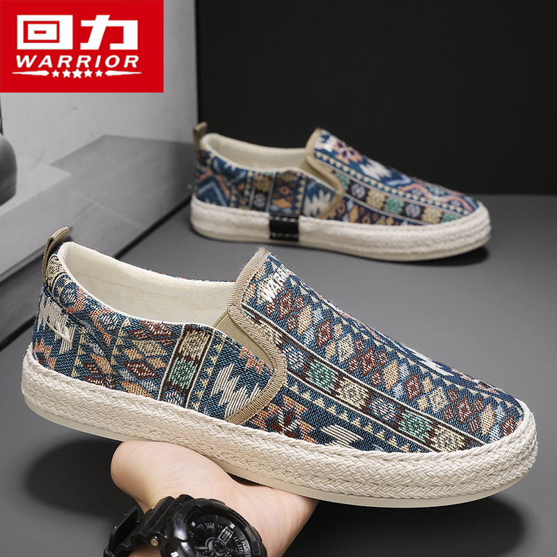 回力男鞋秋季透气民族风亚麻刺绣布鞋休闲懒人一脚蹬千层帆布板鞋