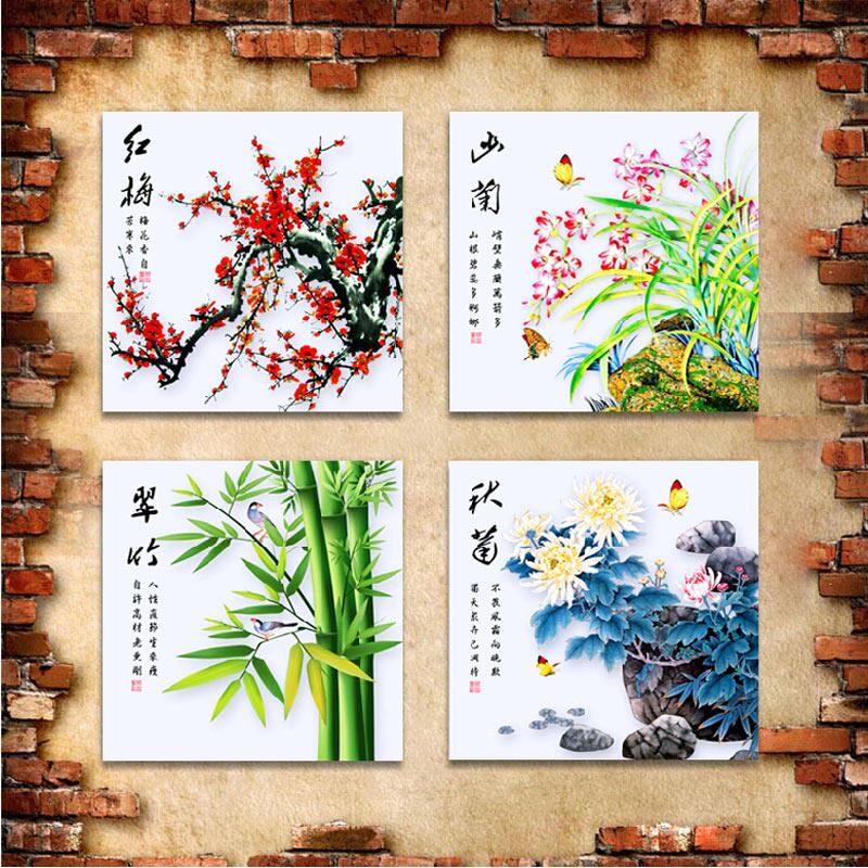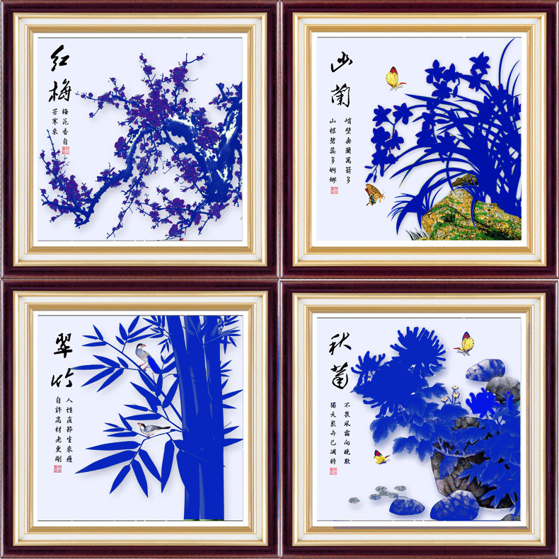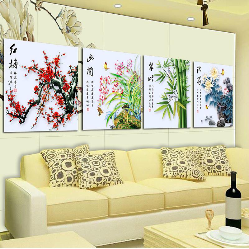 5d宣绒布钻石画满钻梅兰竹菊四联2026新款新中式客厅十字绣贴钻画