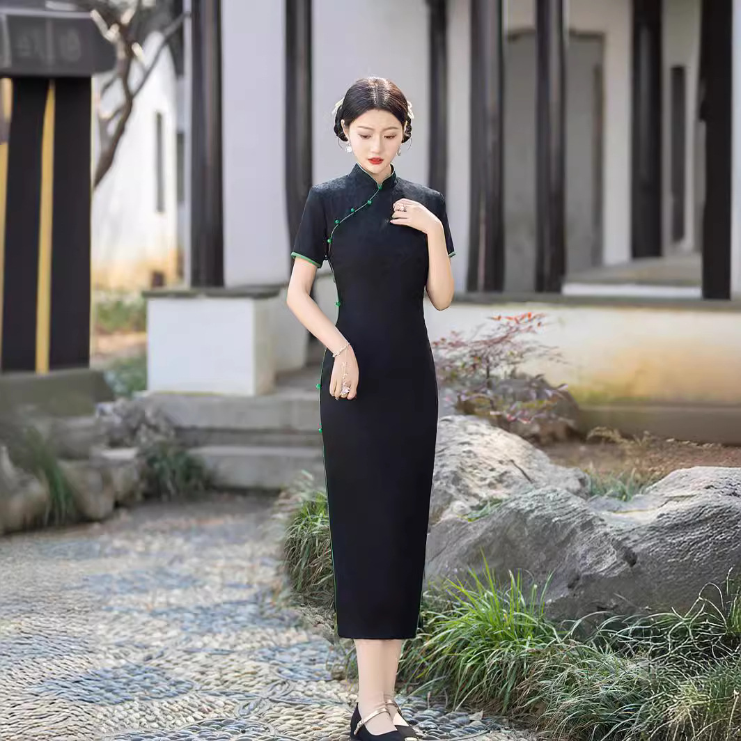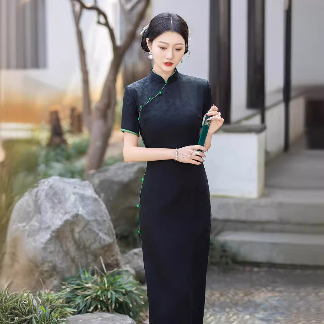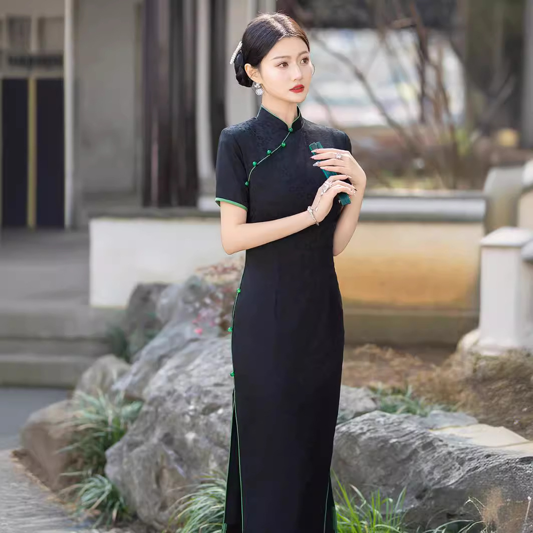 新中式黑色提花嵌绳旗袍夏季新款改良日常可穿贵修身复古中国风