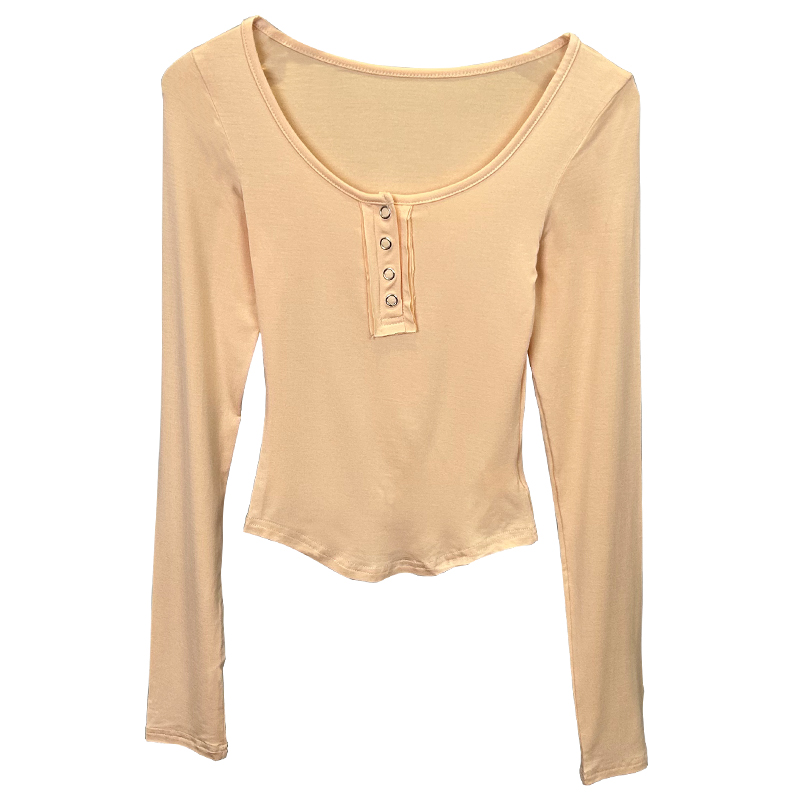 秋冬纯欲性感显胸大紧身长袖t恤女修身微透半开领上衣薄款打底衫