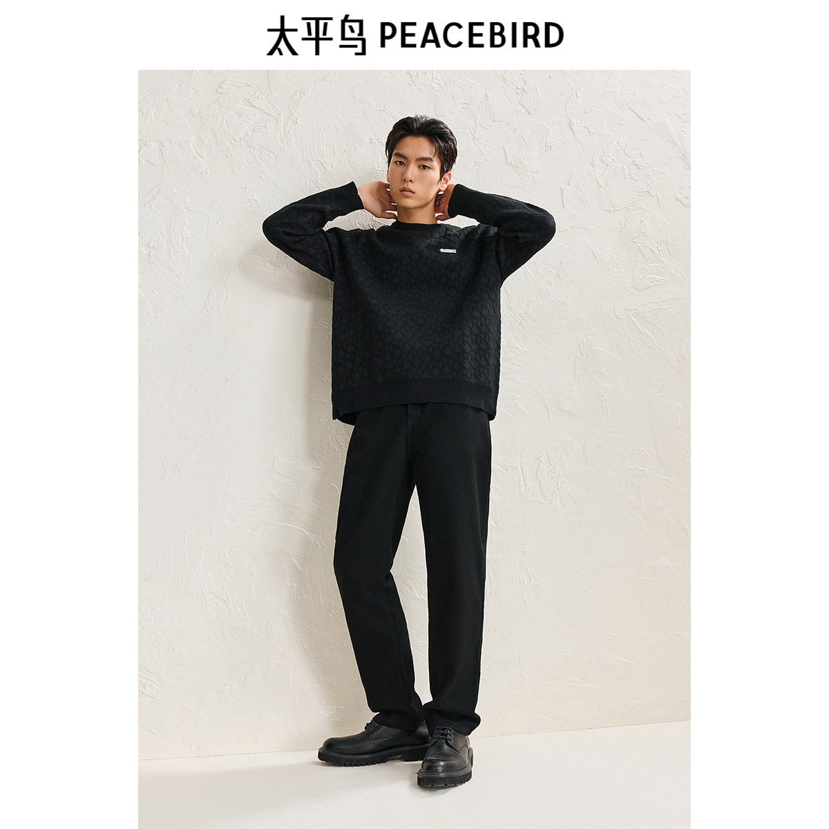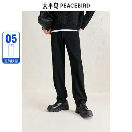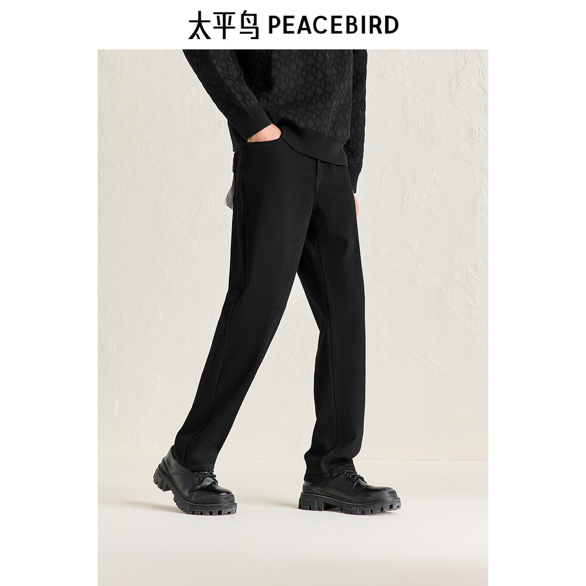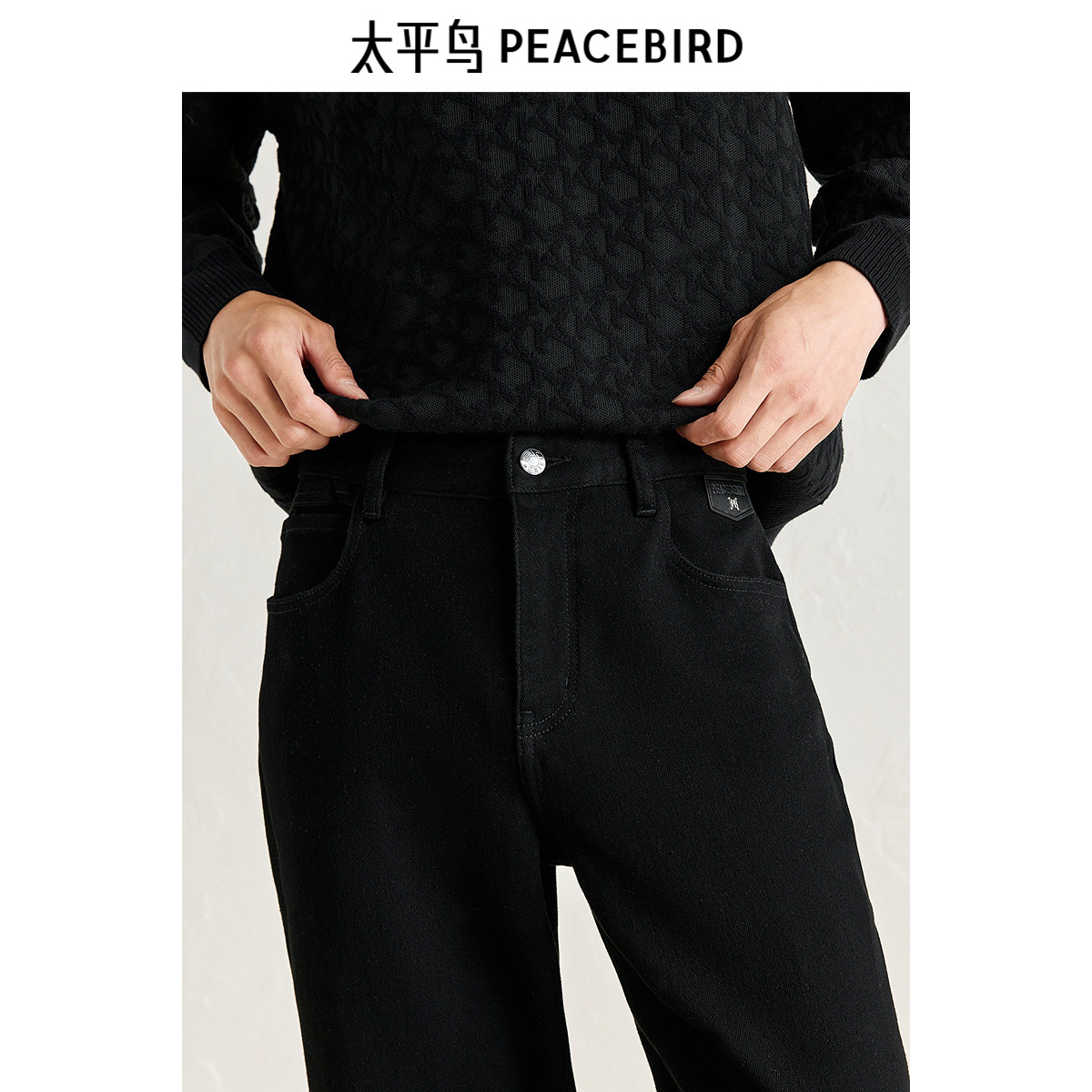 【温芯棉】太平鸟男装牛仔裤冬季新款直筒保暖黑色品质牛仔长裤