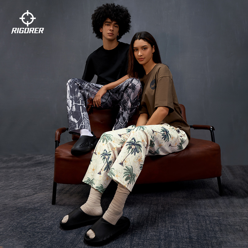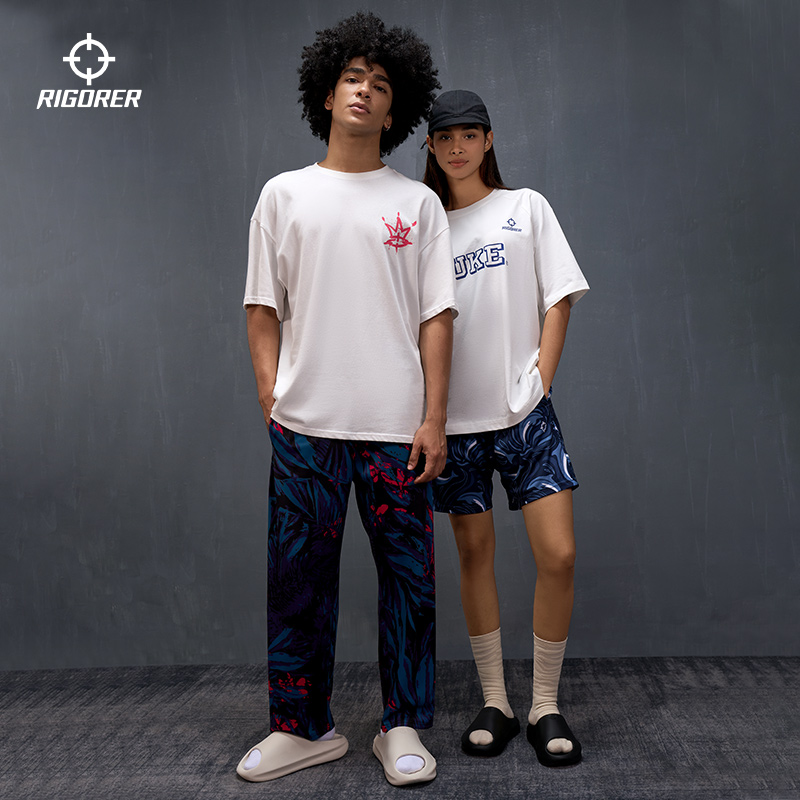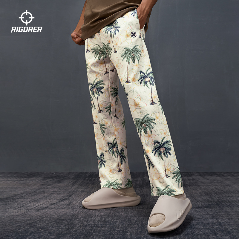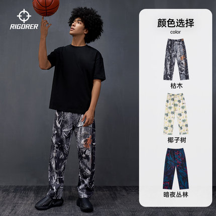 数码印-准者冰丝九分花裤子男秋季新款美式潮流宽松直筒裤运动裤