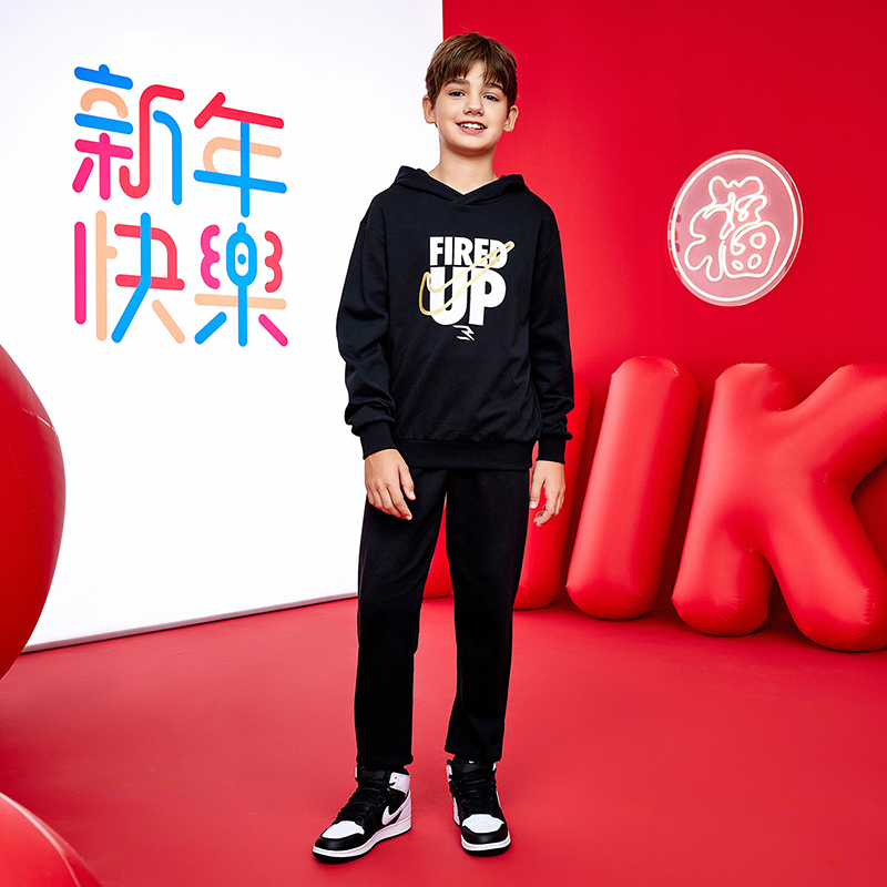 Nike 3brand童装儿童套装春秋季男女童卫衣长裤子2件套休闲运动服