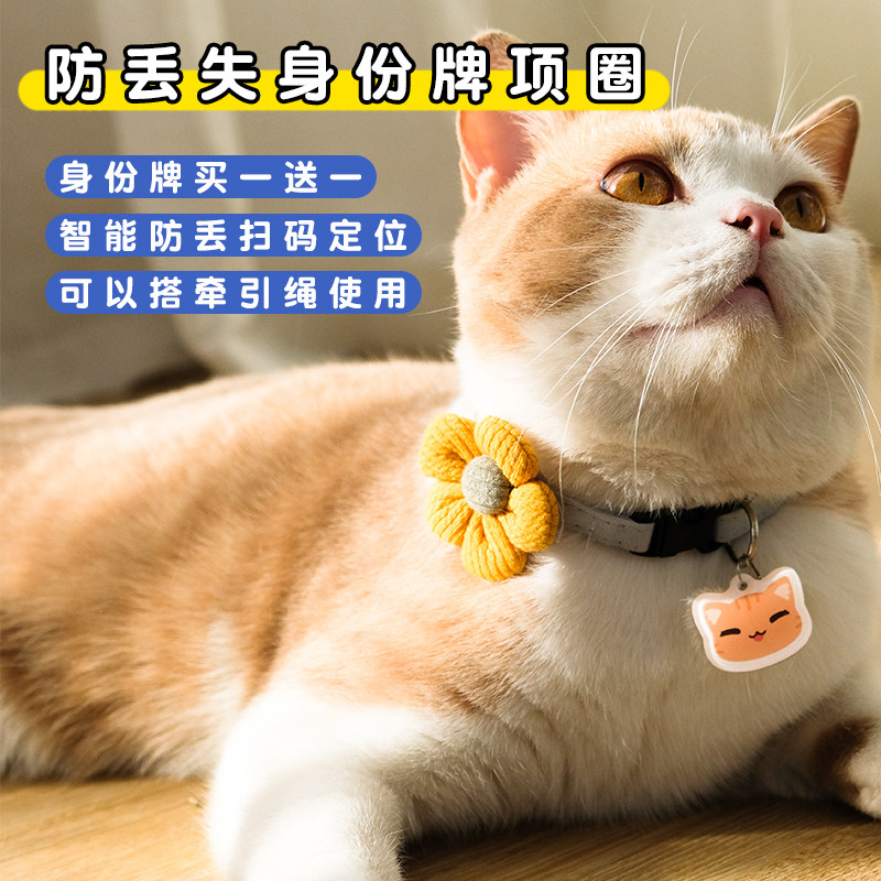 定制狗牌猫牌花朵铃铛项圈狗狗防丢失身份牌可爱猫咪脖圈宠物吊牌