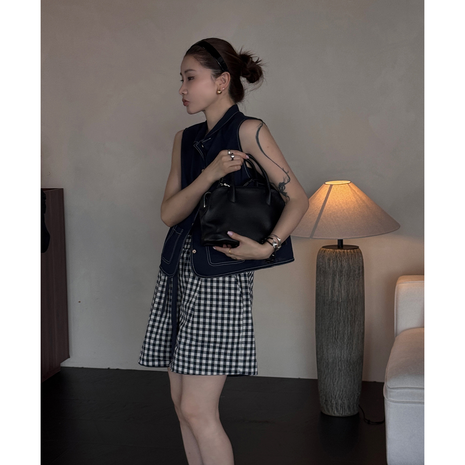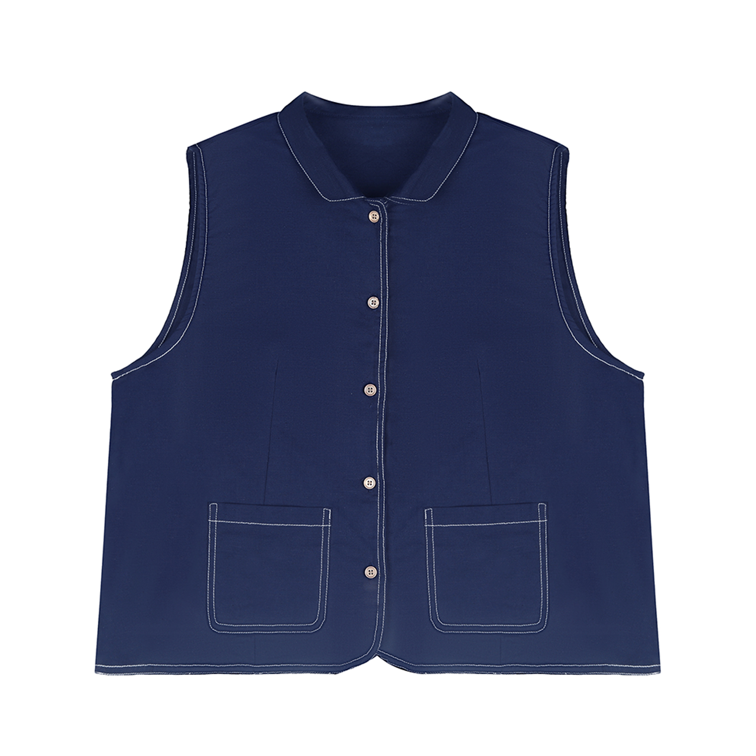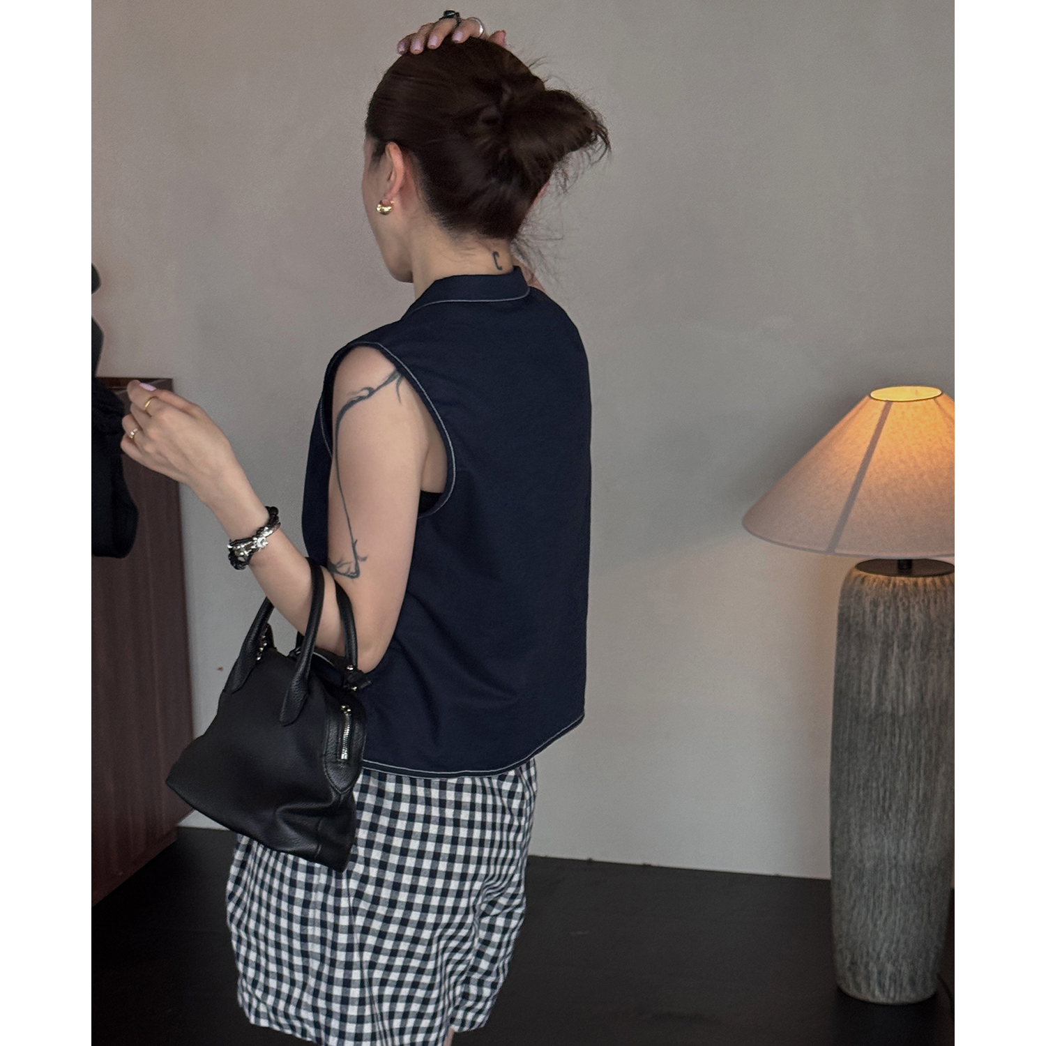 CHU楚妞[星蓝]棉麻混纺明线单排扣马甲2025春夏季新款女背心上衣