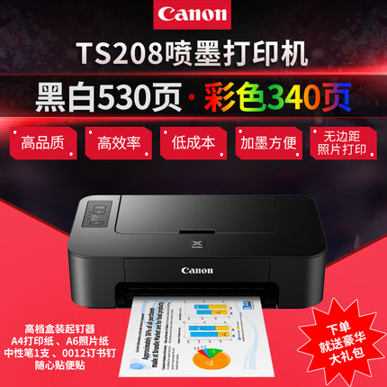 佳能TS208小型打印机家用A4彩色喷墨无边距照片学生作业TS308t单