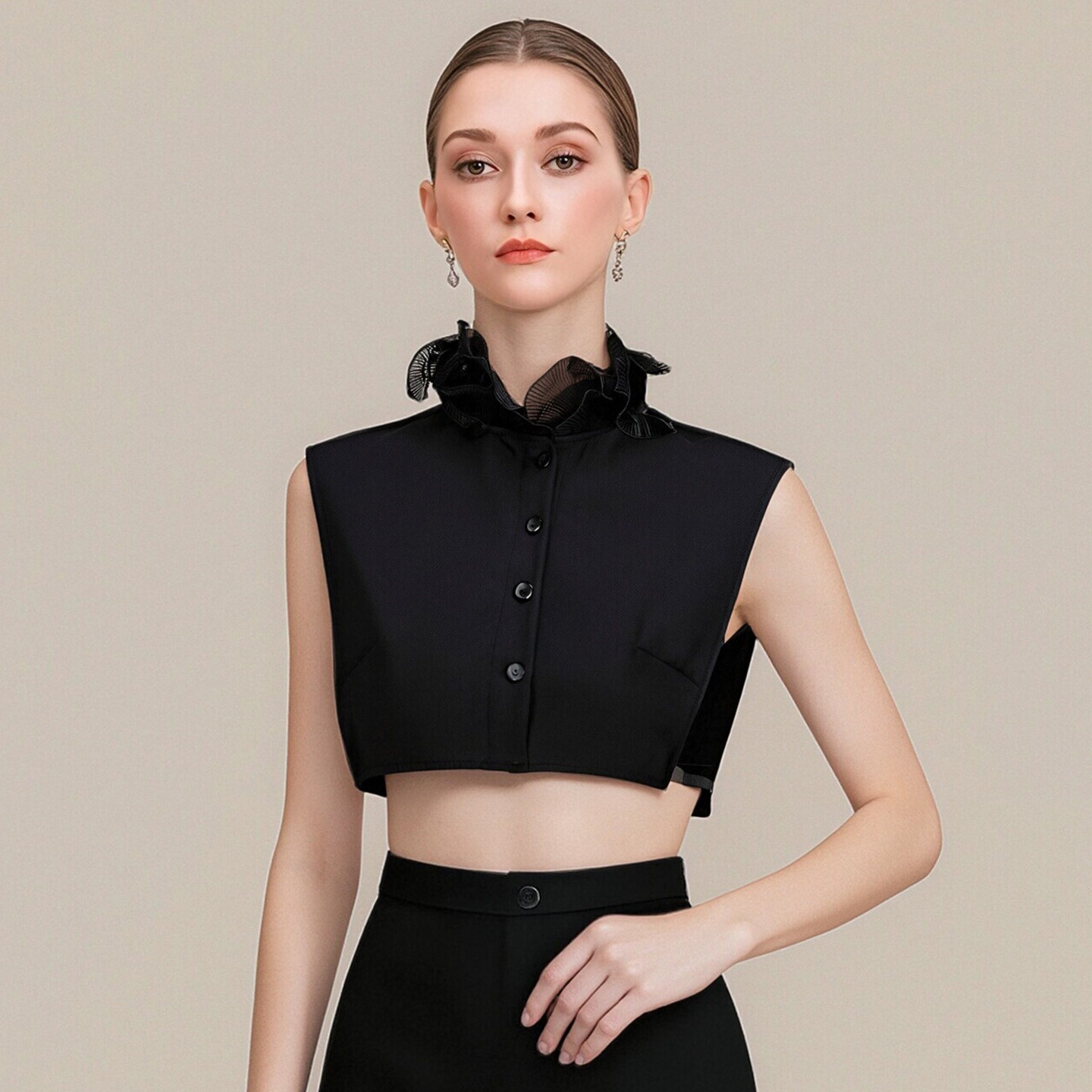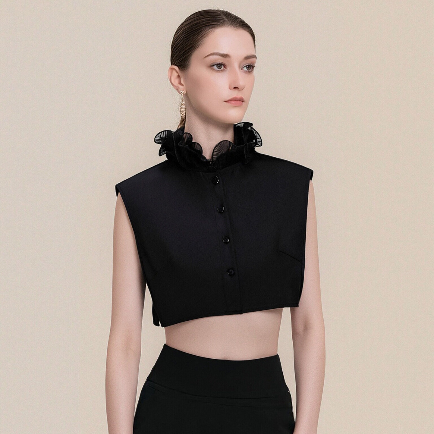 雪纺衬衫假领百搭假领子荷叶边立领黑色装饰内搭打底木耳边假衣领