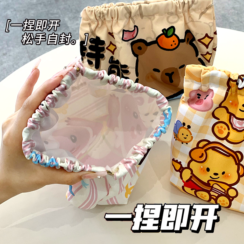 随身化妆包便携口红大号收纳包耳机收纳袋卡通弹片迷你袋自动闭合