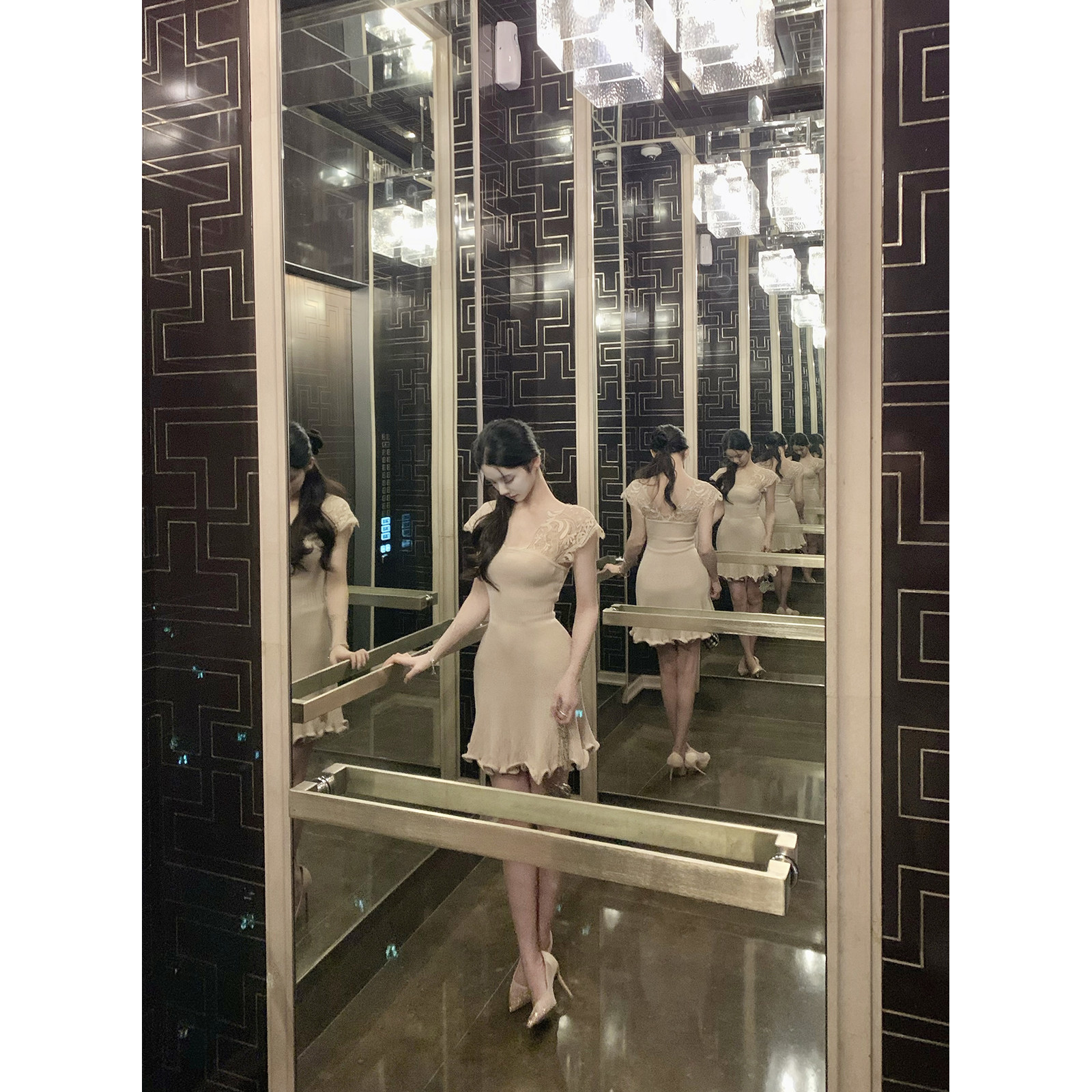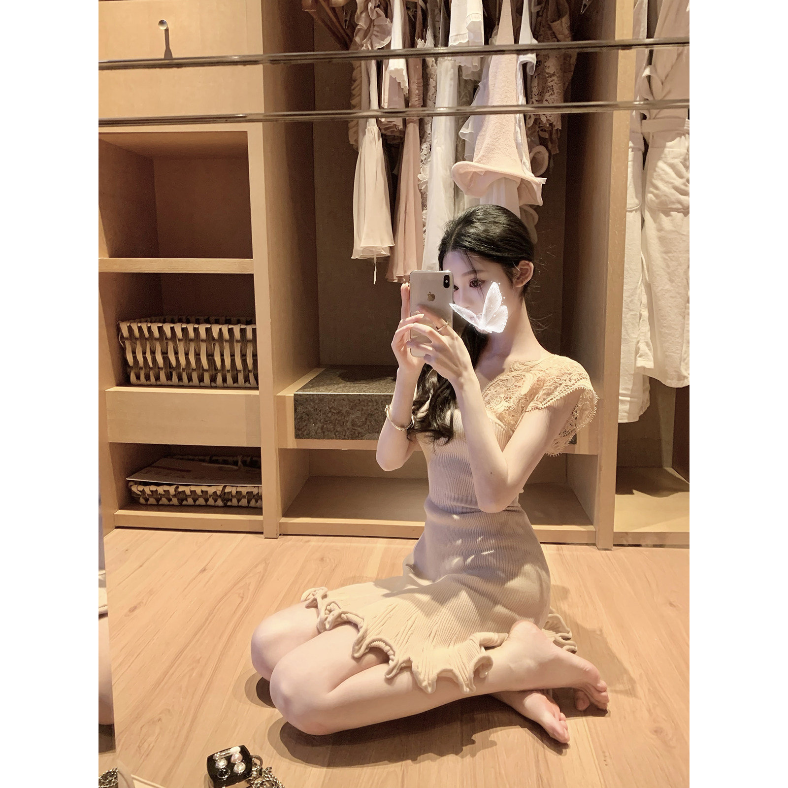 Hotdog 热狗很辣【花丛人鱼】蕾丝拼接针织连衣裙女温柔鱼尾裙子