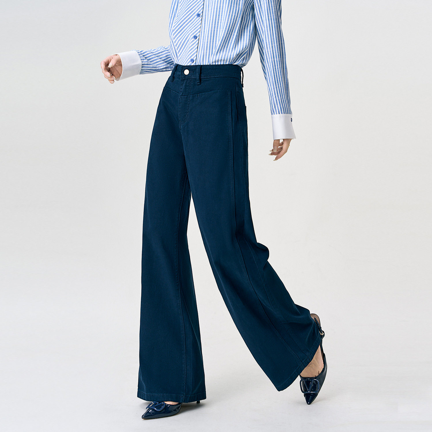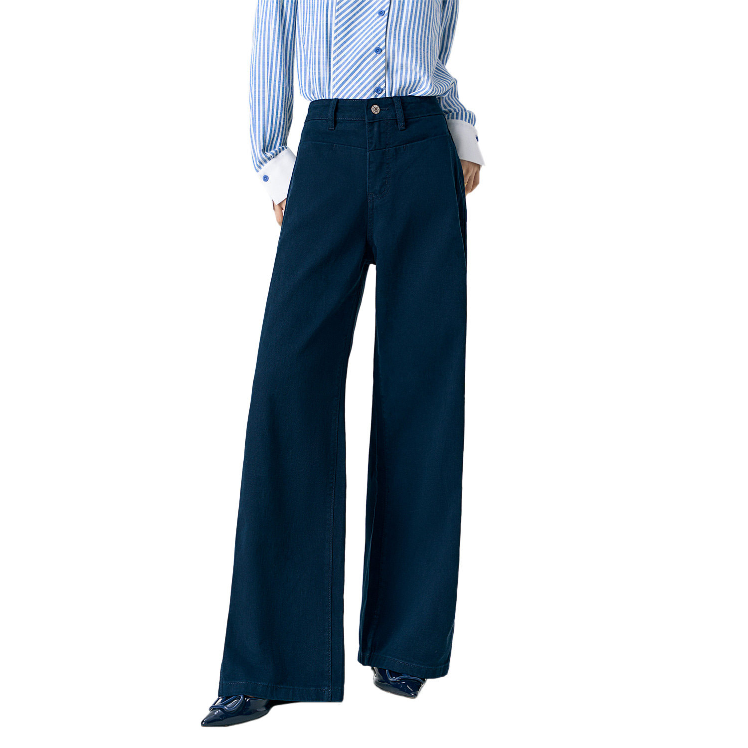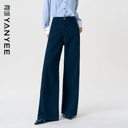 颜域100%纯棉休闲裤2025新款百搭高腰宽松显瘦垂感阔腿裤牛仔裤