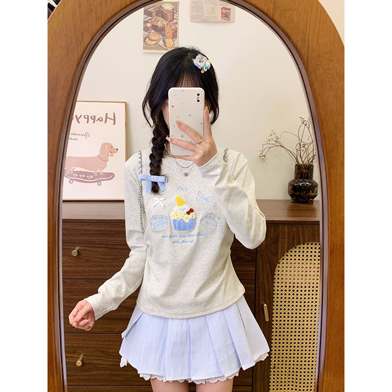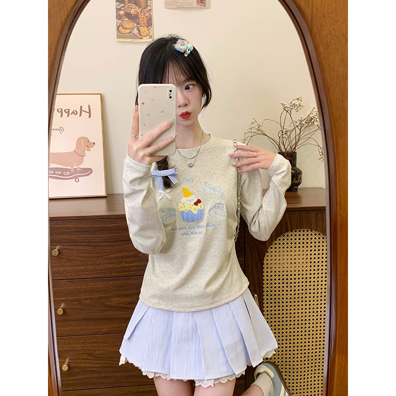 奶油的宇宙 植绒卡通蛋糕打底衫长袖T恤女学院风早秋短款上衣新款