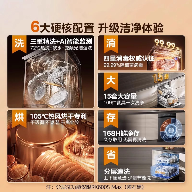 美的洗碗机家用全自动嵌入式RX600SMax15套烘干消毒柜一体家庭
