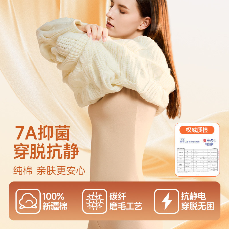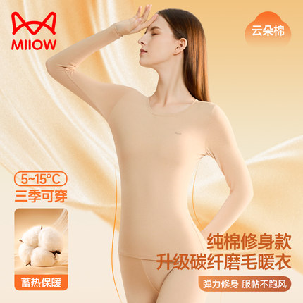 猫人保暖内衣女纯棉抗菌秋冬季圆领全棉毛衫修身女士秋衣秋裤套装