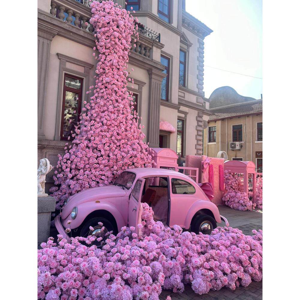 模拟花卉瀑布弗洛伊德背景装饰粉色玫瑰商场排水签到网红背景花墙