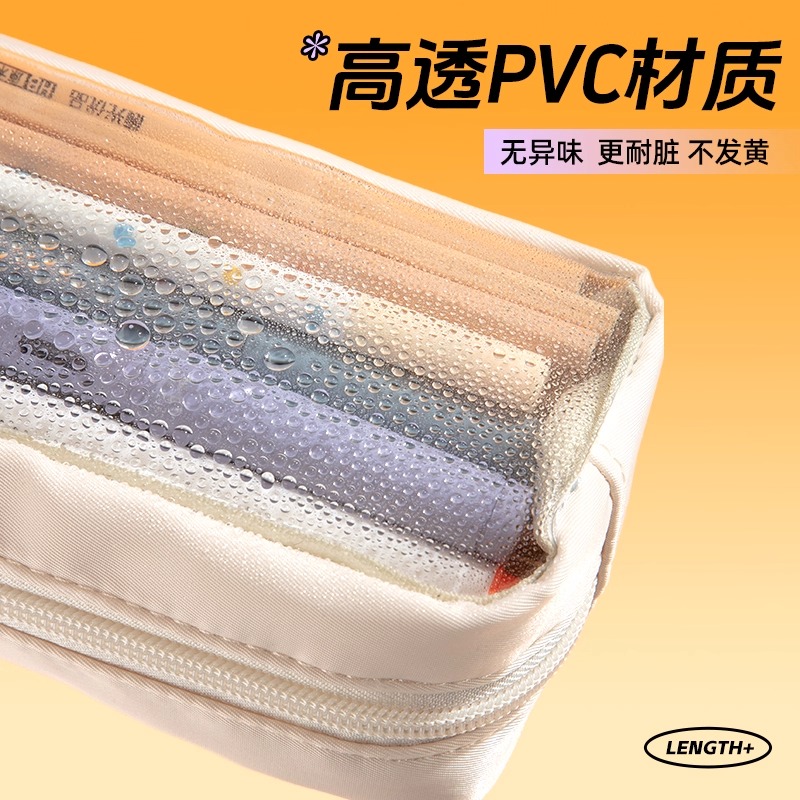 晨光透明笔袋高颜值ins风女孩款女生2025新款大容量文具盒小学生初中高中生用儿童铅笔盒简约痛包多功能便携