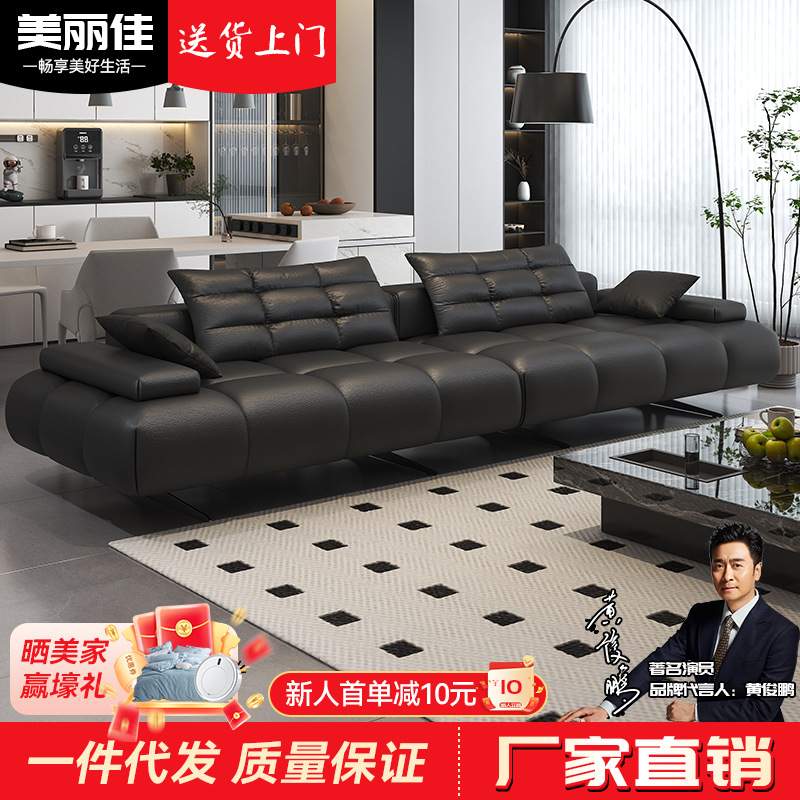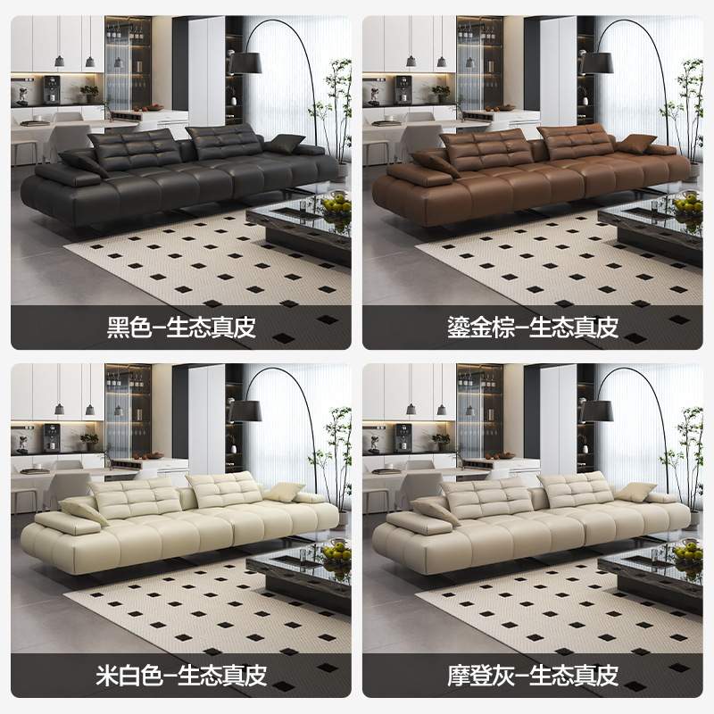 意式极简皮艺沙发直排客厅四季通用豆腐块沙发三人位组合乳胶沙发