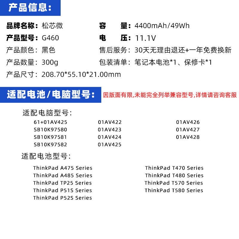 联想thinkpadT470 T480 T570 T580 A475 P51S P52S笔记本电脑电池