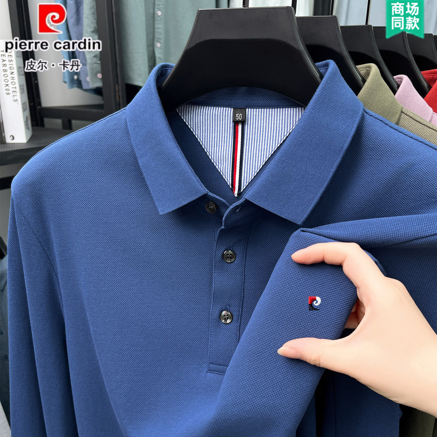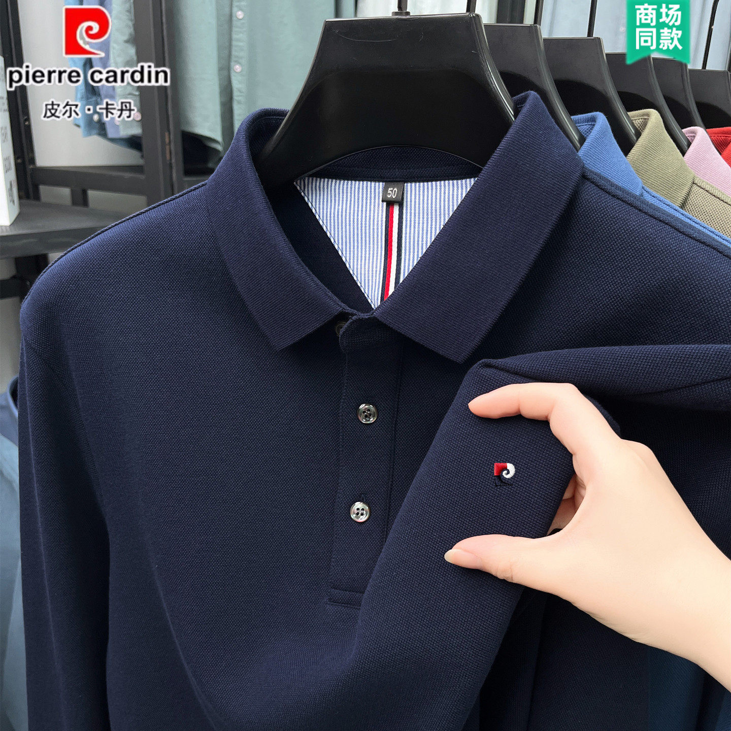 皮尔卡丹【100%纯棉】长袖T恤男全棉 秋冬新款加绒加厚翻领POLO衫